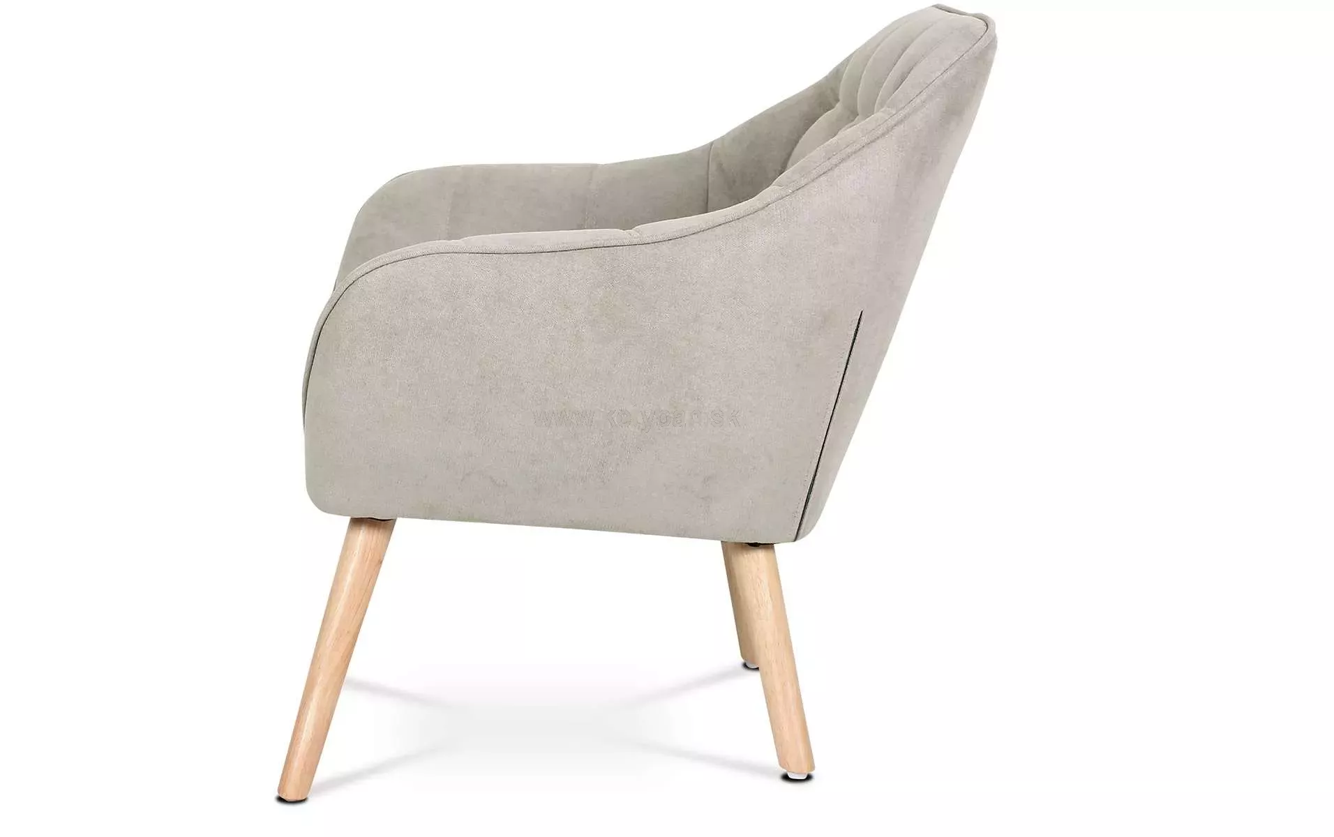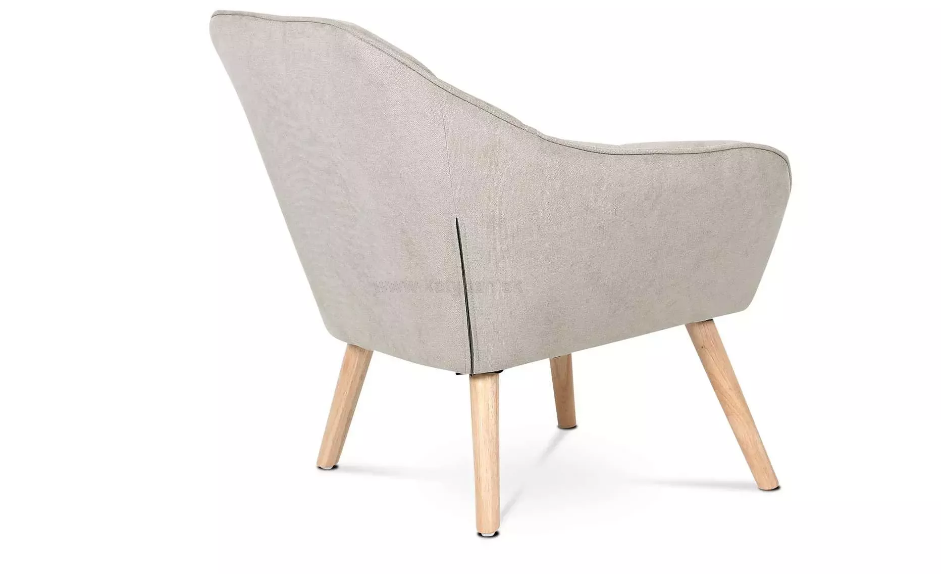Poťah je z látky v trendy odtieňoch, kostra z masívneho dreva, vyplnené je kvalitnou PU penou. Sedák je ešte spevnený elastickými popruhmi pre zvýšenie komfortu pohodlia. ohodlie a vnútornú priestrannosť tohto kresla ocení určite každý. A ak si ešte opriete ruky o zvýšené podrúčky, budete dlho otáľať, kým kreslo opustíte.