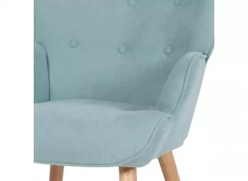 Kreslo s podnožkou Ak-302 sa pýši minimalistickými líniami v škandinávskom štýle. Vyniká vysokým prehnutým operadlom, úzkymi a krátkymi podrúčkami a dekoratívnymi jemnými čalounickými vťahmi zakončenými gombíkmi na čelnej strane operadla. To všetko vytvára charakteristické severské retro línie tohto kresla.