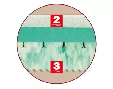 Nosná vrstva označená tuhosťou č. 2 (stredná) je mäkšia a poddajnejšia vďaka unikátnemu typu perforovaného Gél-Latexu. Vďaka mikro-kapsulám špeciálneho gélu má chladivý efekt. Je mäkký, tvarovo stály a vďaka výborným termoregulačným vlastnostiam dobre odvádza vlhkosť.
