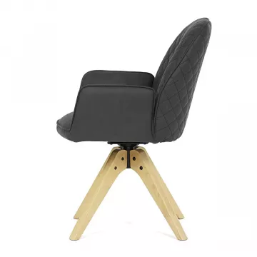Táto jedálenská stolička ponúka kombináciu luxusného designu, komfortu a funkčnosti s otočným mechanizmom a funkciou resetu. Jej čierna farba a prešitie v tvare diamantu ju robia vizuálne atraktívnym prvkom pre váš interiér.