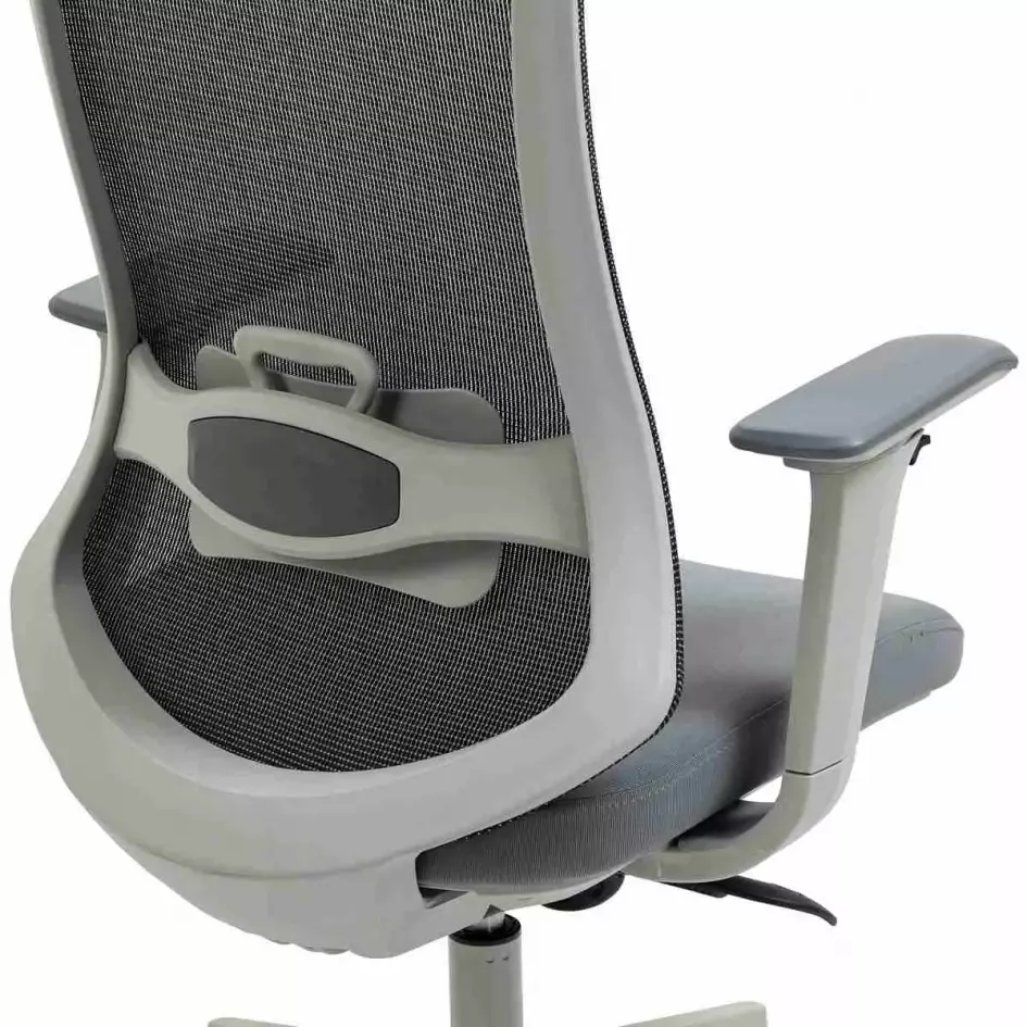 Dizajn a materiály: Táto kancelárska stolička je vyrobená s vysokým operadlom a čalúneným v priedušnom materiáli MESH, ktorý zaisťuje optimálnu cirkuláciu vzduchu a pohodlie počas dlhých pracovných dní. Sedák stoličky je potiahnutý šedou látkou pre väčšie pohodlie.