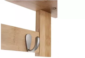 Je vyrobený z lakovaného bambusu v prírodnej farbe s elegantnými 5 oceľovými vešiakmi .