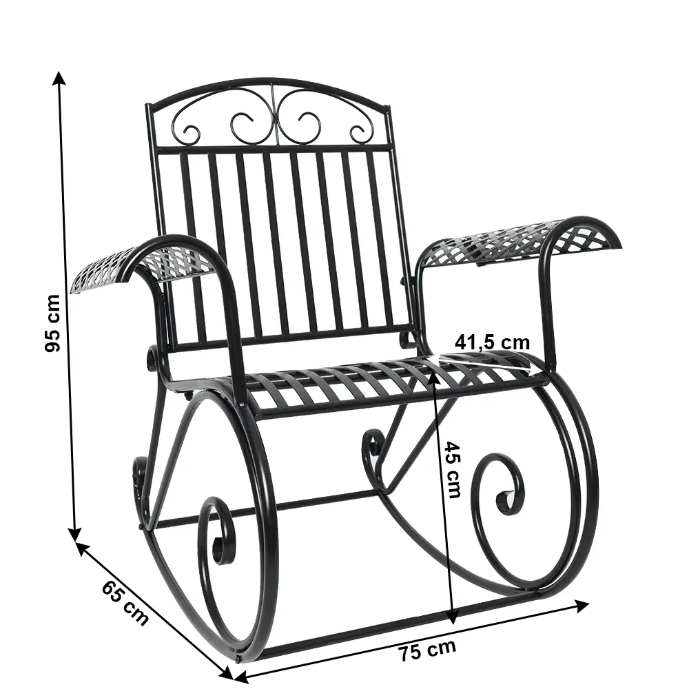 Dodajte svojej záhrade alebo terase ten správny šmrnc a odpočívajte v štýle s hojdacím kreslom Saidi . Robustný kovový rám má nosnosť 100 kg a elegantné ornamenty dodávajú kreslu romantický nádych. Užívajte si pohodlie a relaxáciu na čerstvom vzduchu s týmto štýlovým hojdacím kreslom.