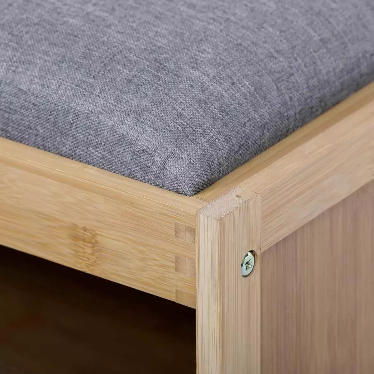Tento botník Dr-n1014 je skvelým riešením pre vašu predsieň, kde chcete udržať poriadok a zároveň dodať interiéru moderný vzhľad. Vyrobený z masívneho bambusu v prírodnej farbe, botník poskytuje nielen praktický úložný priestor pre vašu obuv, ale aj pohodlnú polstrovanú sedaciu plochu v šedom odtieni. Škandinávsky štýl tohto botníku dodá vášmu domovu útulný a moderný nádych.