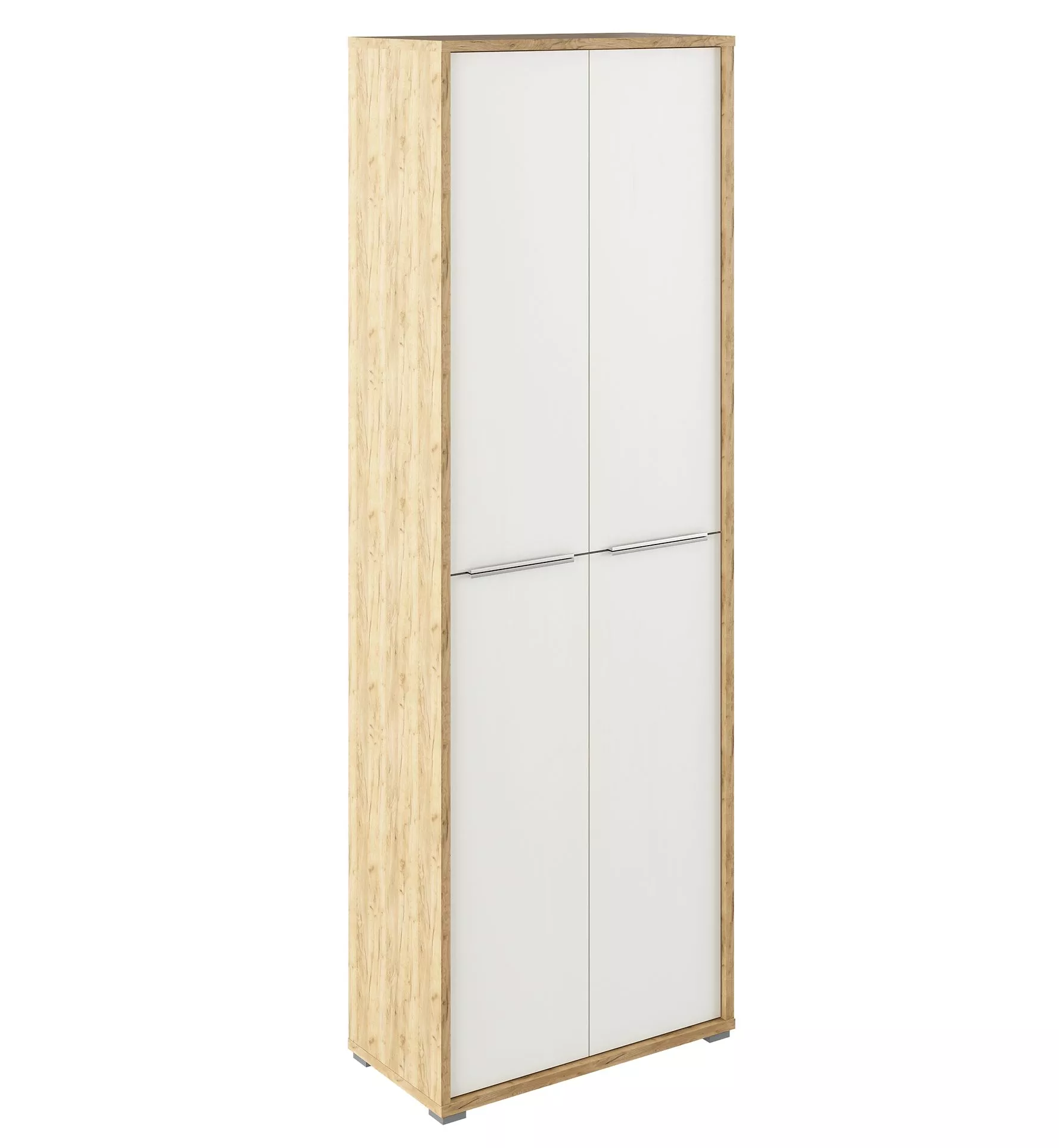 Uložte svoje dokumenty a podklady na prácu tak, aby ste ich mali stále poruke a prehľadne dostupné. Využite k tomu kancelársku skriňu zo zostavy Rioma s piatimi policami. Kovové úchyty sú pevné a dizajnovo svieže. Prístup do skrine je rozdelený dvoma dvierkami s dizajnovou úchtkou.