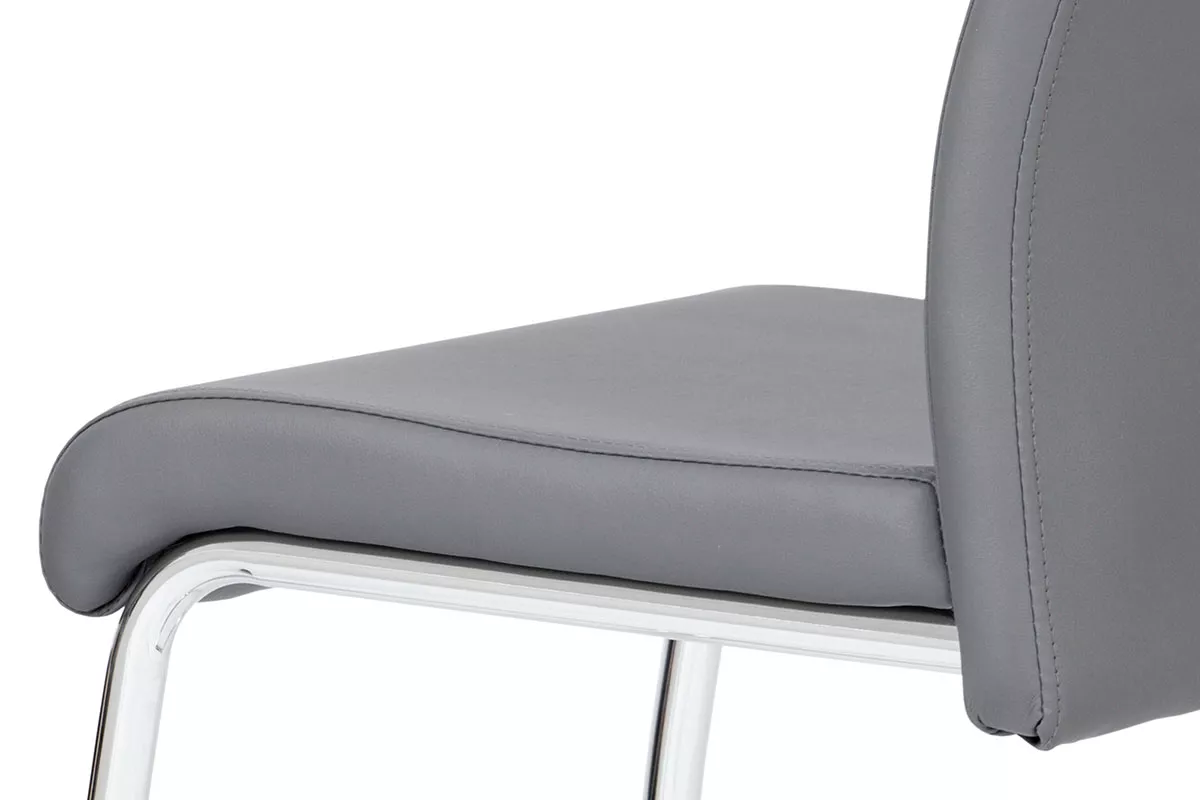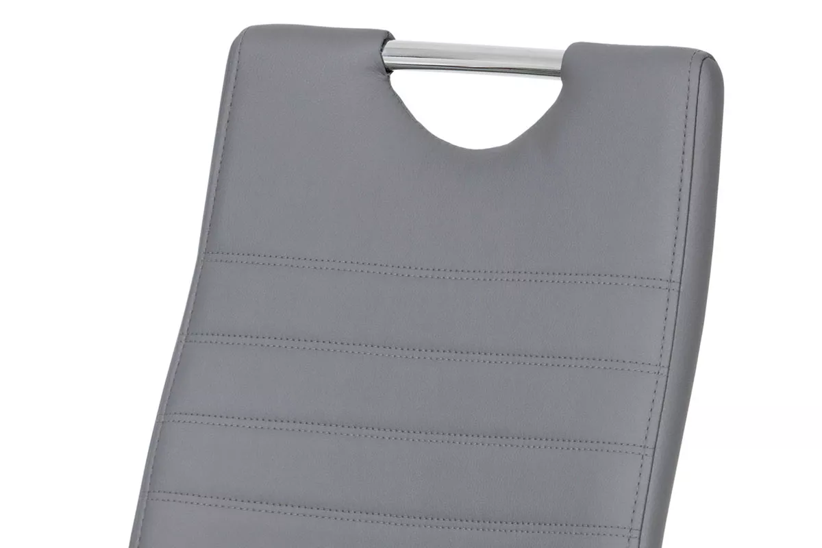 Štýlová moderná stolička Dcl-418 s dekoratívne prešitým operadlom je očalúnená šedou koženkou. Pochrómované madlo a pohupová podnož sú kruhového prierezu. Vďaka praktickému madlu je manipulácia so stoličkou jednoduchá, rovnako ako údržba je bezproblémovou záležitosťou.