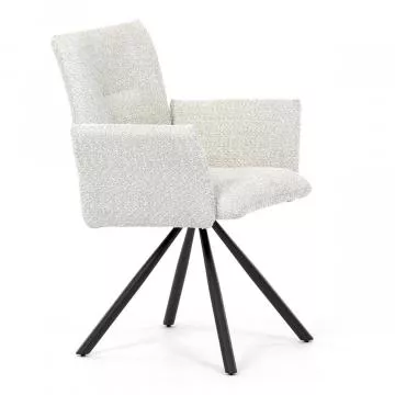 Táto moderná jedálenská stolička Dch-w1117 spája pohodlie s funkčnosťou a ponúka jedinečný industriálny štýl. Vďaka látke Bouclé a polstrovaniu z PU peny poskytuje príjemné a mäkké sedenie. Čierna kovová centrálna podnož dodáva stoličke robustnú stabilitu a moderný vzhľad. Otočný mechanizmus L90°/P90° s automatickým vrátením sedadla do základnej polohy zaisťuje maximálnu flexibilitu, čo je praktické pre ľahké pohybovanie a zmenu smeru sedenia.
