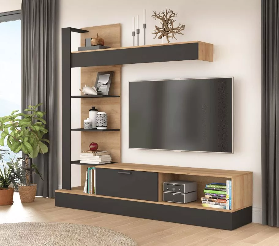 Obývacia stena, dub riviéra/čierna, GELUZA:
