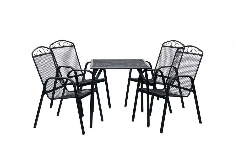 Kovový záhradný stôl ZWMT-70R s drôtenou vrchnou doskou štvorcového tvaru. Výborne sa kombinuje so všetkými typmi kovového záhradného nábytku. Je ľahko udržiavateľný a umývateľný.