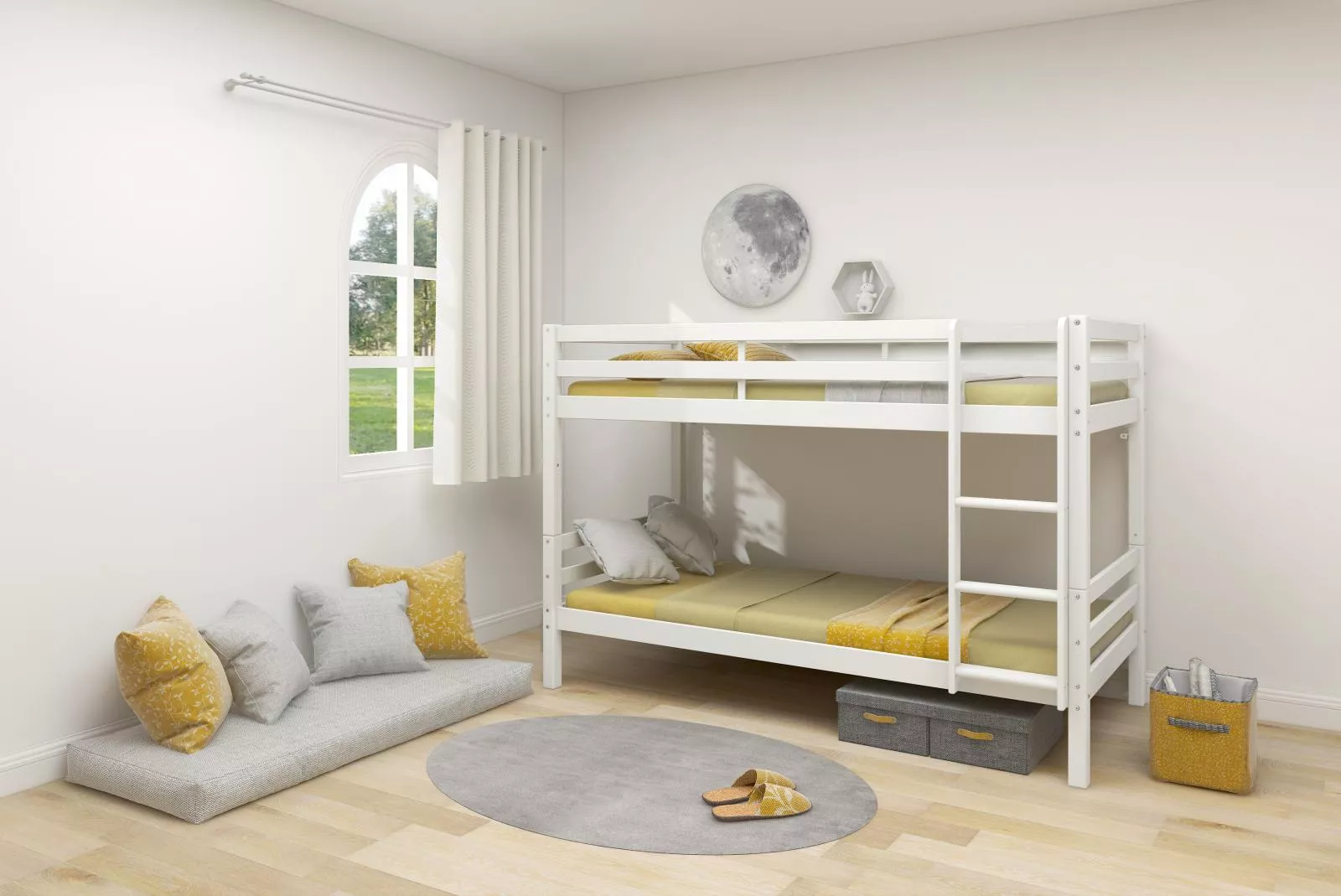 Poschodová posteľ Actim - Masívna borovica v bielej farbe Poschodová posteľ Actim z masívneho borovicového dreva je ideálnym riešením pre ...