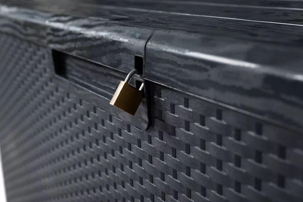 PORTOFINO 340 l ponúka priestranný úložný priestor, ktorý je ideálny na uschovanie záhradných vankúšikov, hračiek, náradia a mnoho ďalšieho. Vďaka jeho veľkej nosnosti až 250 kg môžete tiež využívať veko boxu ako pohodlné miesto na sedenie. Týmto spôsobom môžete jednoducho vytvoriť ďalšie posedenie na Vašej záhrade. Imitácia ratanového povrchu na bočných stenách a dreveného na veku dodáva PORTOFINO 340 l luxusný vzhľad, ktorý sa bude skvele hodiť k akémukoľvek záhradnému designu. Jeho grafitová farba je vkusná a neutrálna, takže sa dokonale zladí s okolím. Tento box má tiež možnosť uzamknutia, čo zaisťuje bezpečné uloženie Vašich cenností a nábytku.