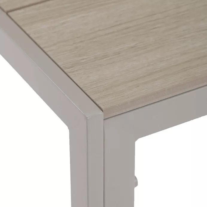 Kombinácia odolného polywoodu a pevnej kovovej konštrukcie zaisťuje dlhú životnosť a moderný vzhľad. Dubový odtieň dosky dodáva prírodný nádych, ktorý skvele zapadne do akéhokoľvek prostredia.