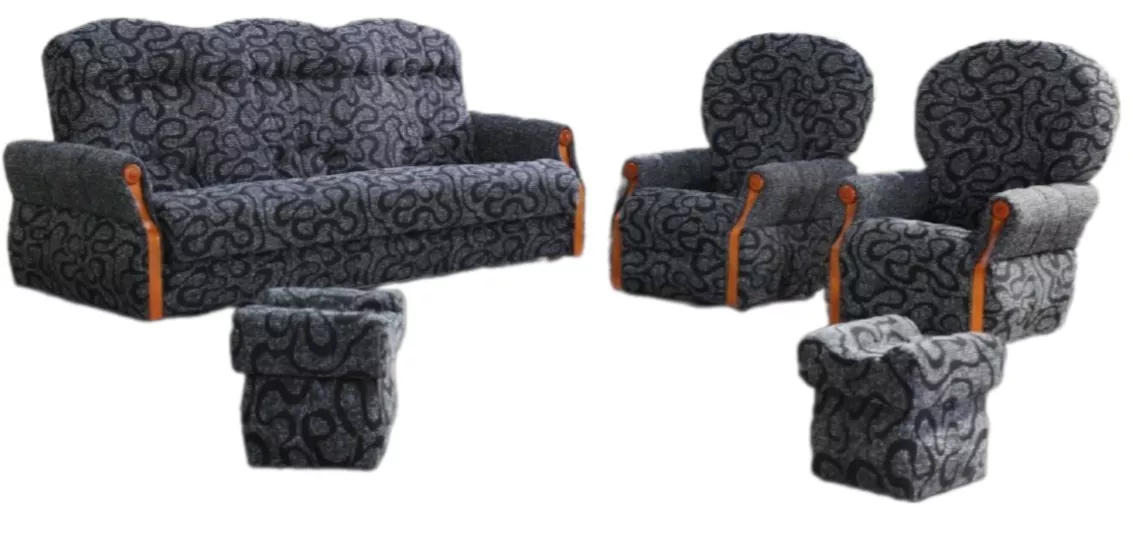 Cena zahŕňa rozkladací trojsed, dve kreslá a dva taburety. Dekorácie nie sú súčasťou balenia.
