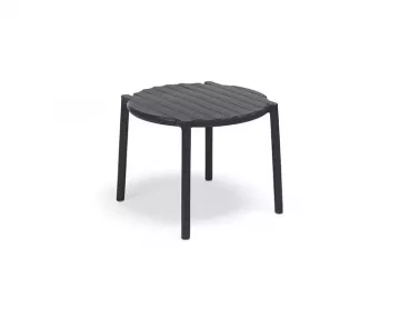 Záhradný stolík s guľatou doskou DOGA. Veľmi praktický na manipuláciu. Vybavené protišmykovými nožičkami. Materiál polypropylén fg zaisťuje odolnosť voči UV žiareniu a veľmi ľahkú údržbu.