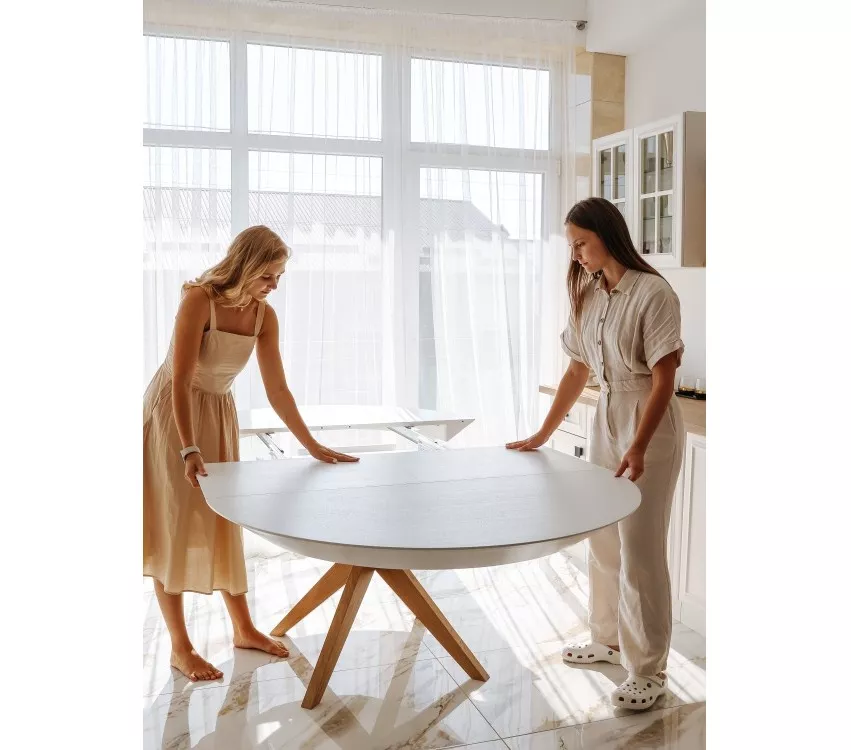 Ak hľadáte okrúhly jedálenský stôl pre 6 a viac osôb, tento model vám poskytne dostatok miesta a pohodlia. Vďaka praktickému rozkladaciemu mechanizmu je možné rozkladací stôl (127 cm + rozklad 100 cm) Nordalis ľahko rozšíriť a vytvoriť tak viac priestoru pre hostí či rodinné večere.