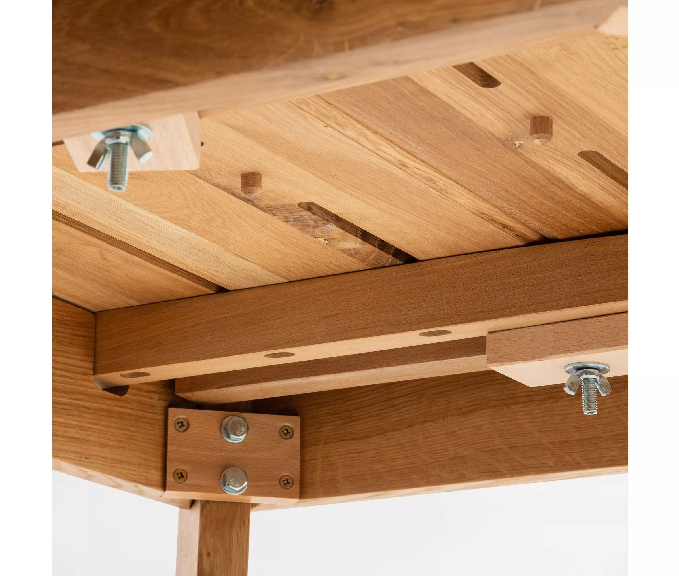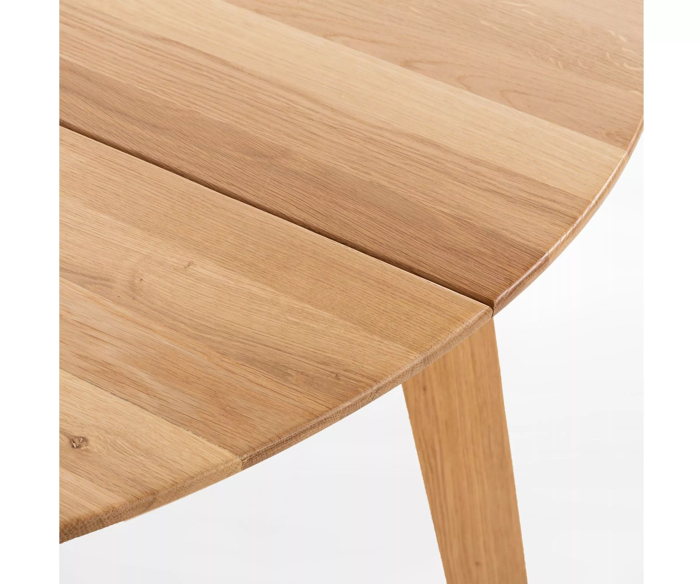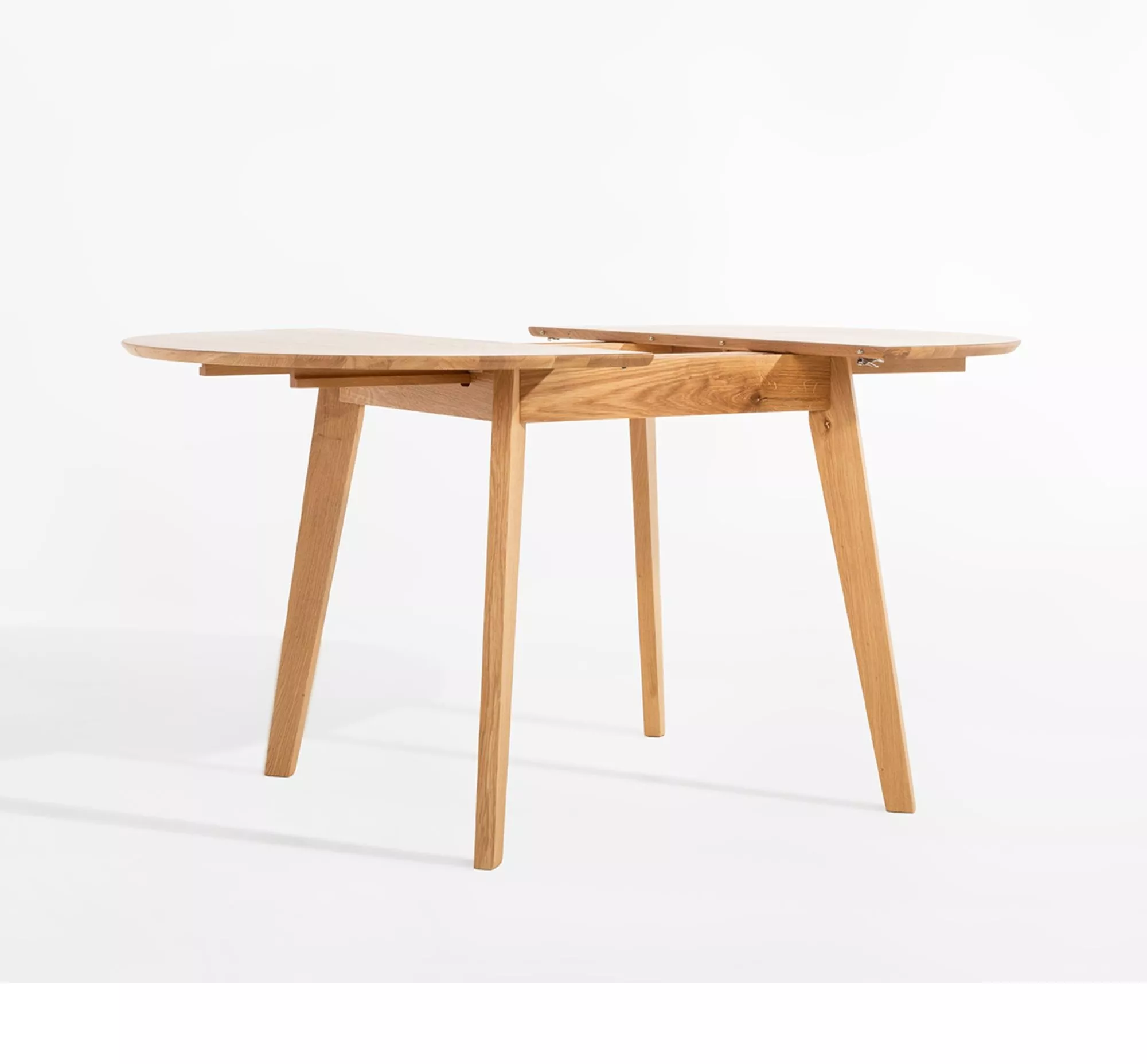 Oválny rozkladací stôl Liora z masívneho dreva s prírodnou kresbou pôsobí vzdušne a vďaka svojmu zaoblenému tvaru vytvára prívetivú atmosféru.