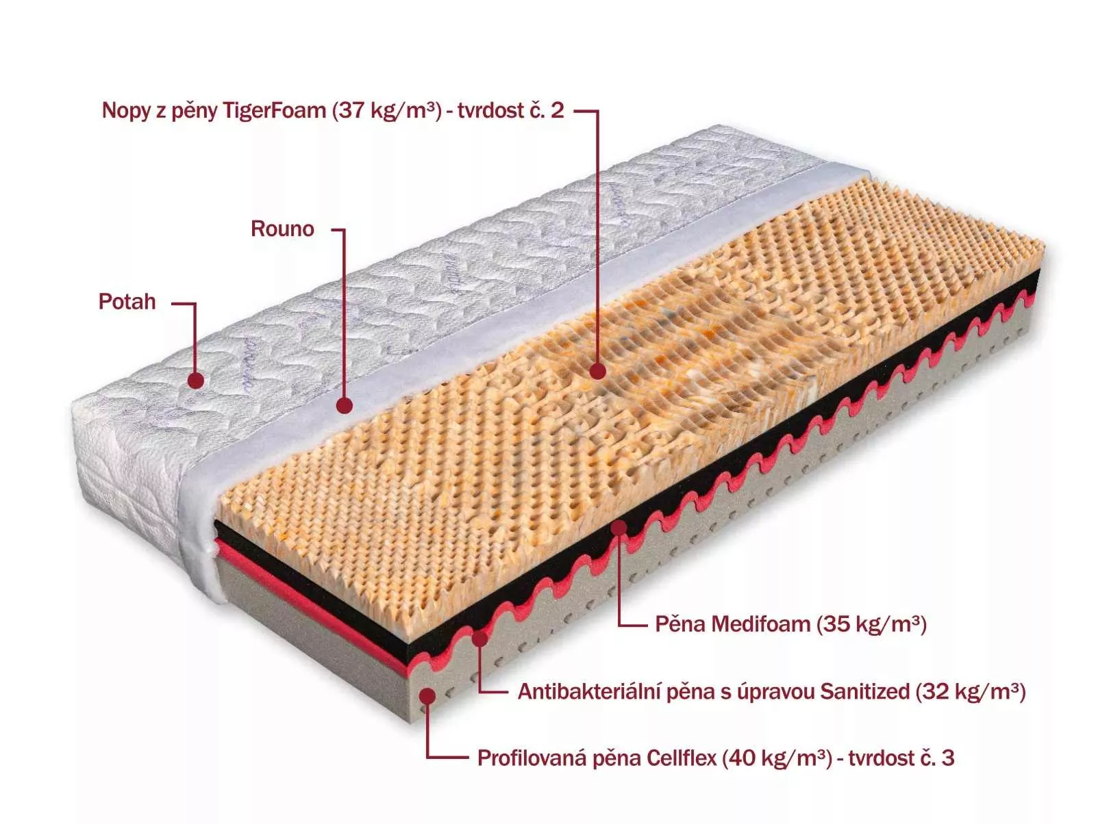 Tigris - luxusný ortopedický matrac pre náročných s antibakteriálnou ochranou a dvojitou tuhosťou