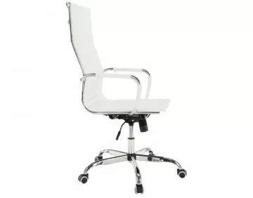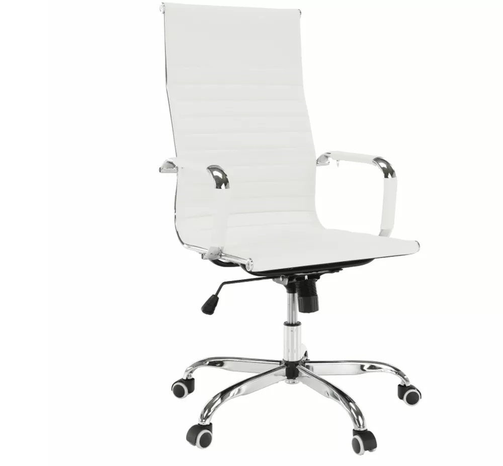 Ekokoža pôsobí elegantne a sviežo, zatiaľ čo pochrómovaná základňa dodáva celkovému vzhľadu punc luxusu. Nastaviteľná výška sedu umožní prispôsobiť stoličku vašim potrebám, a pogumované kolieska zaisťujú plynulý pohyb na všetkých typoch podláh.