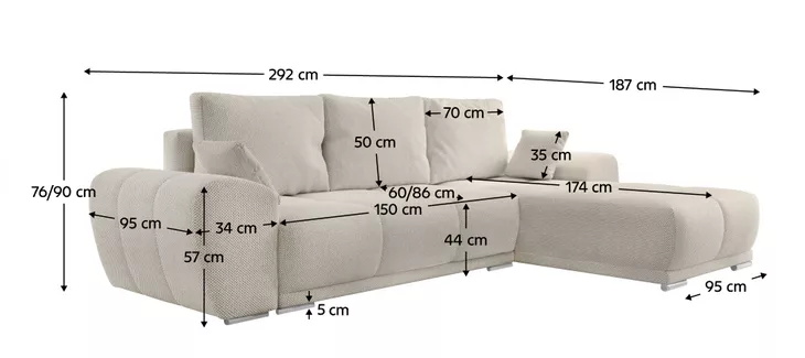 - Rozmery otomanu (ŠxH): 95 × 174 cm