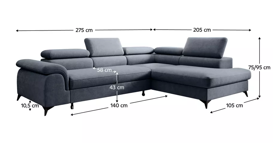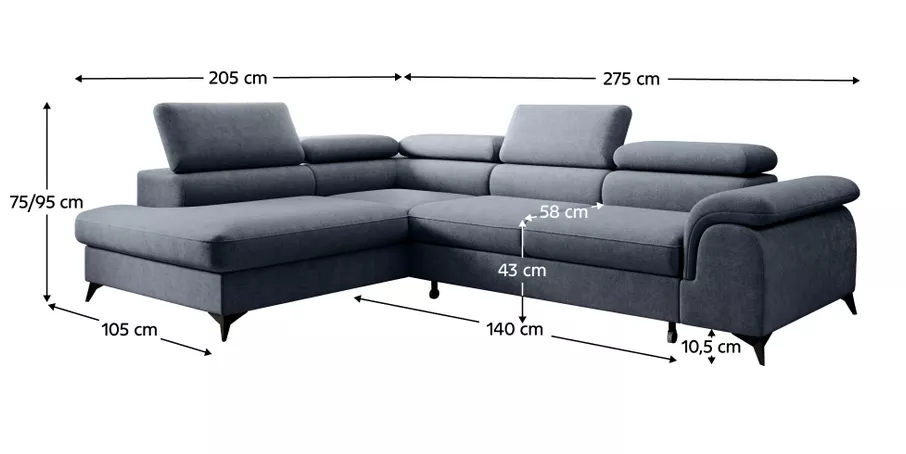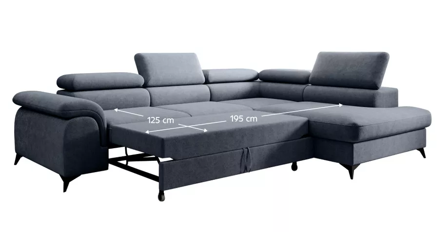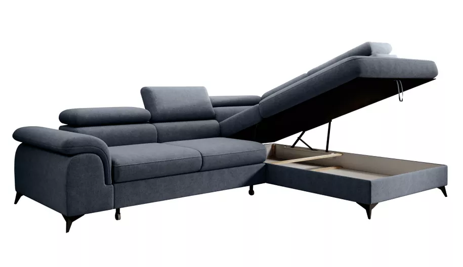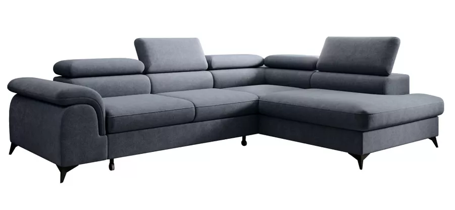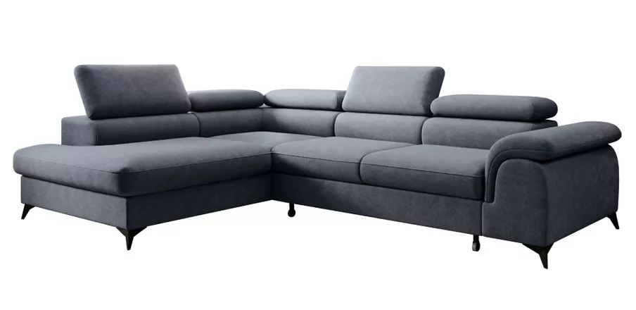 Moderná rohová sedacia súprava v tvare L, ktorá spája pohodlné sedenie, praktické funkcie a elegantný vzhľad . Celočalúnené prevedenie v látke Whisper v šedej farbe umožňuje jej umiestnenie aj do priestoru. Ponúka päť polohovateľných opierok hlavy, praktický úložný priestor v otomane a funkciu rozkladu, vďaka ktorej vznikne lôžko o rozmere 125×195 cm . O stabilitu sa starajú čierne kovové nožičky.