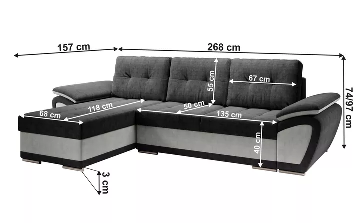 Kombinácia svetlo šedej a tmavo šedej látky Orinoco dodáva interiéru moderný vzhľad. Súprava je rozkladacia a ľahko z nej vytvoríte lôžko o rozmere 130×200 cm , vhodné na príležitostné prespanie. Praktický úložný priestor sa postará o uschovanie lôžkovín alebo sezónnych diek.