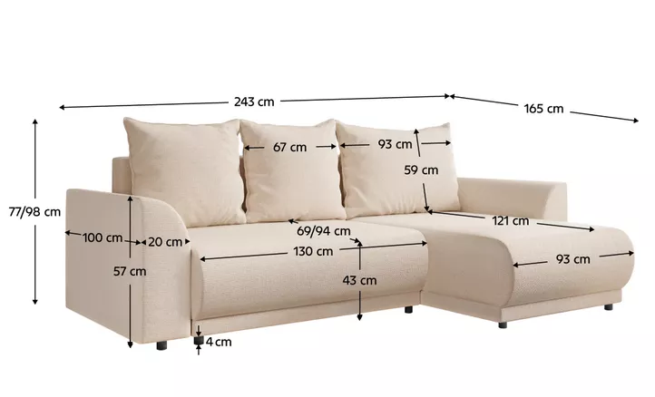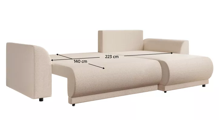 Rohová sedacia súprava, ktorá v sebe spája štýl, pohodlie a praktickosť. Elegantné béžové čalúnenie v látke Aragon ľahko zapadne do akéhokoľvek interiéru a vďaka celočalúnenému prevedeniu ju možno umiestniť aj do priestoru . Funkcia rozkladu umožní behom okamihu vytvoriť lôžko o rozmere 140×223 cm , ideálne pre príležitostné prespanie hostí. Nechýba ani praktický úložný priestor na deky či vankúše. Výplň z vlnitých pružín a PUR peny zaisťuje pohodlné sedenie aj odpočinok, zatiaľ čo stabilné plastové nožičky v čiernej farbe podčiarkujú moderný vzhľad.
