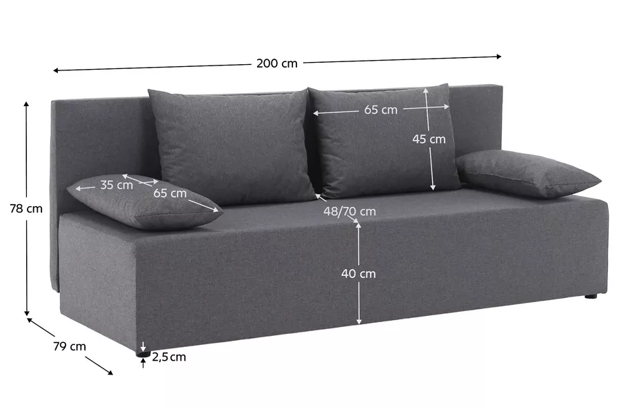 O pohodlné sedenie aj odpočinok sa stará výplň z PUR peny T28 doplnená vankúšmi. Stabilitu aj moderný vzhľad zaisťujú čierne plastové nožičky. Pohovka EUGI je skvelým riešením ako do obývacej izby, tak aj do hostinskej izby.