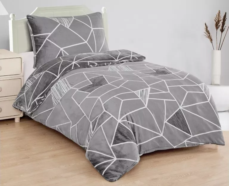 Hebučké mikroplyšové obliečky Triangulo šedé sú ideálnou voľbou pre chladné dni vďaka svojim výborným termoregulačným vlastnostiam