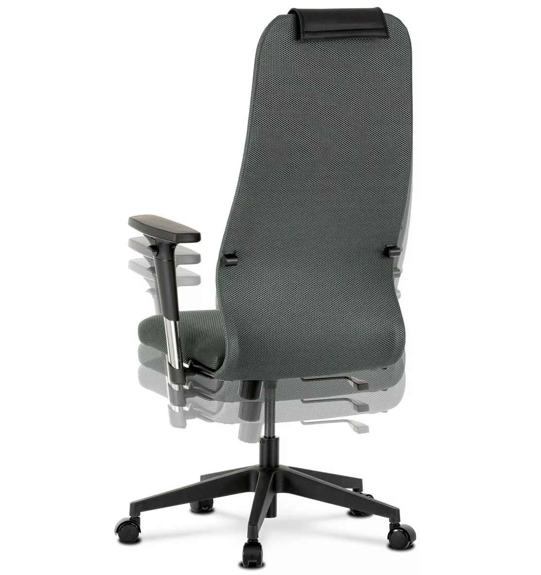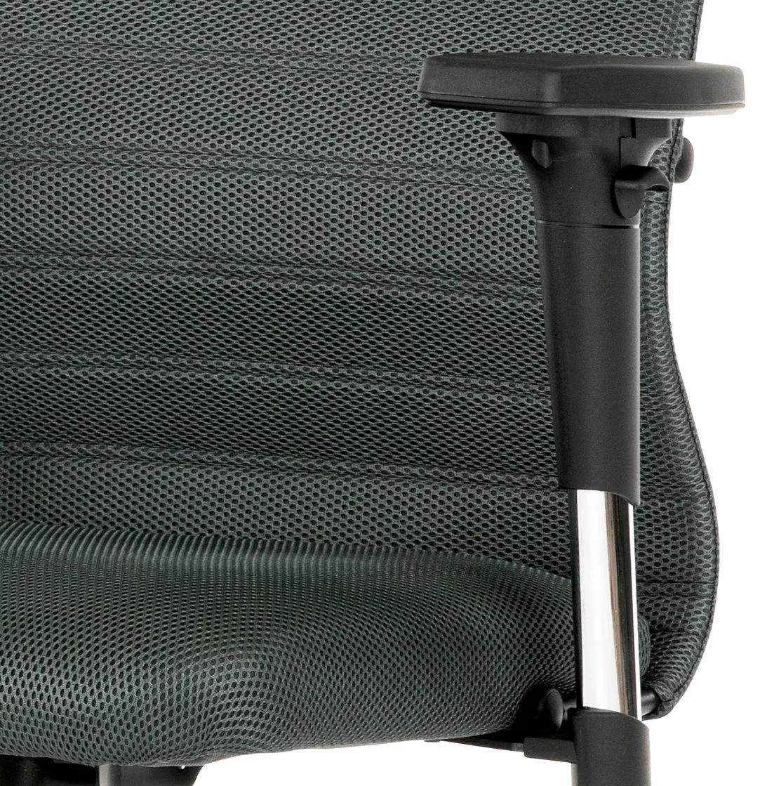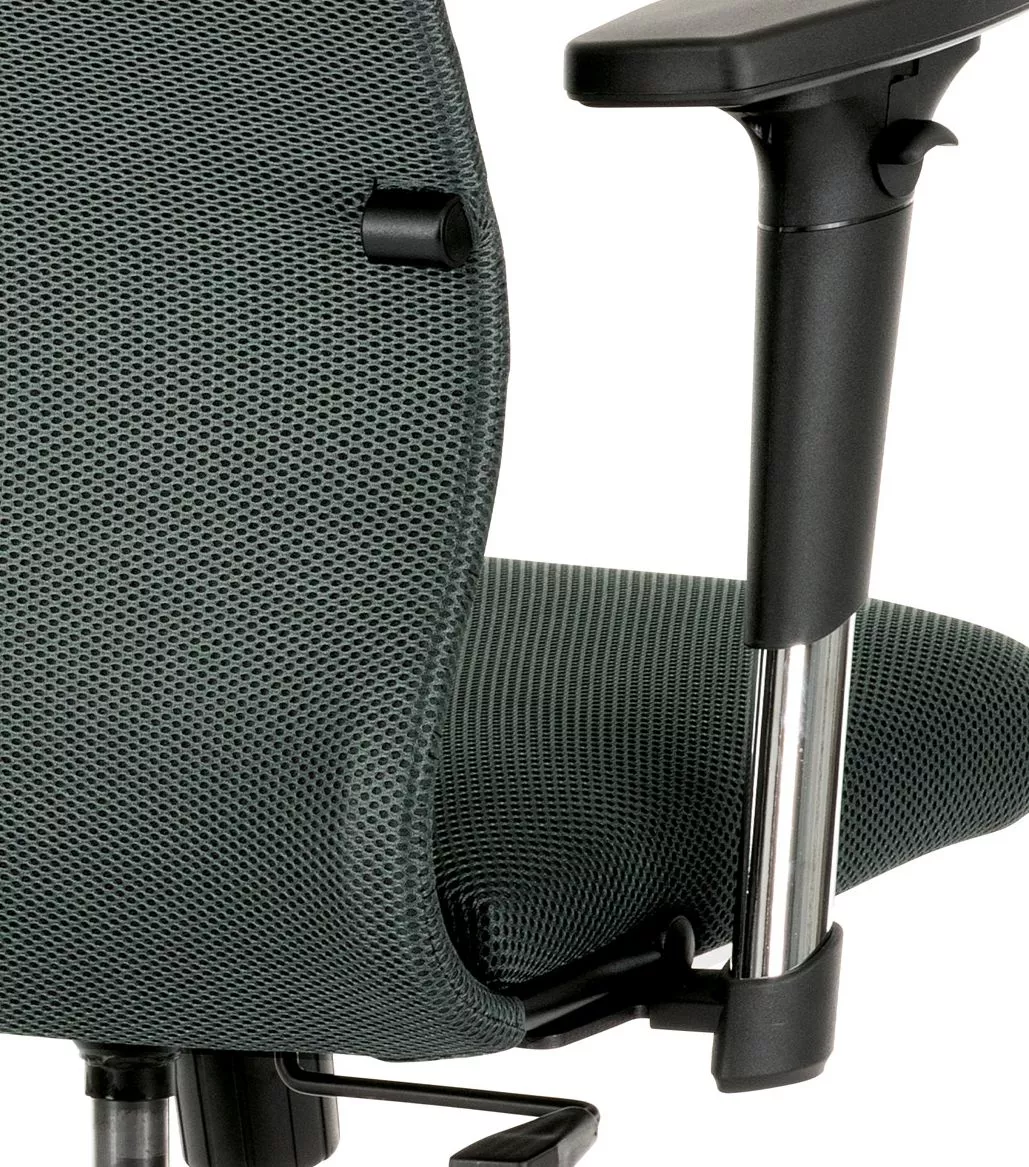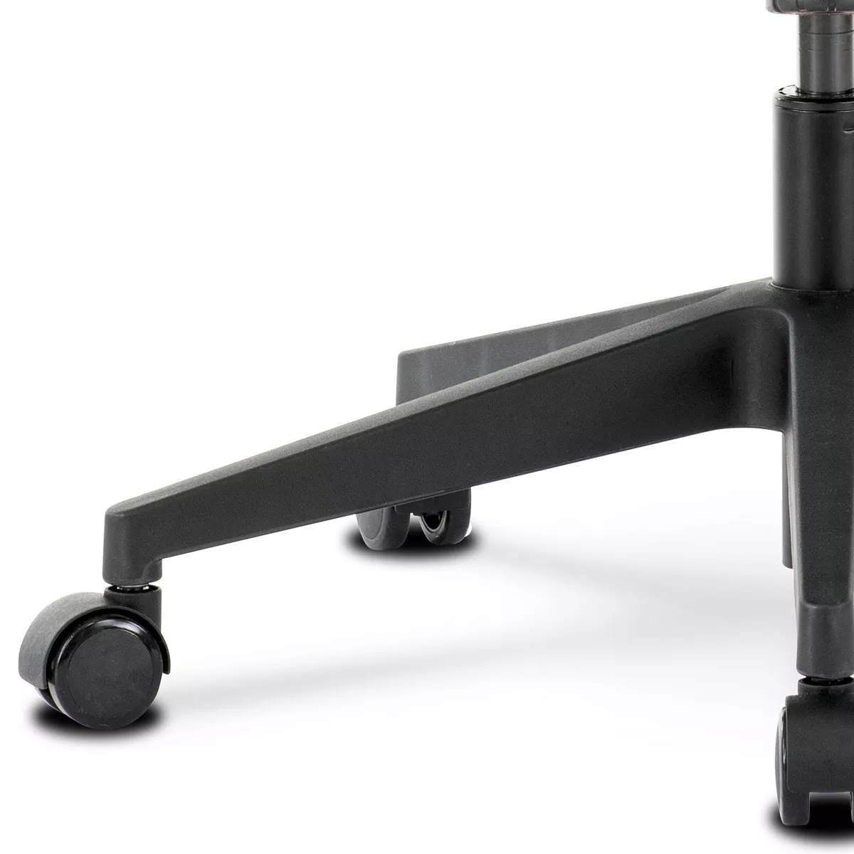 Stolička je vybavená hojdacím mechanizmom s možnosťou aretácie v základnej polohe, čo podporuje dynamické sedenie a odľahčuje chrbtici. Podrúčky typu 2D je možné nastaviť v dvoch smeroch (výška a šírka), takže si ľahko prispôsobíte ergonómiu podľa svojich potrieb. Stabilný plastový kríž s piatimi kolieskami zaisťuje pevnosť konštrukcie aj ľahkú mobilitu.