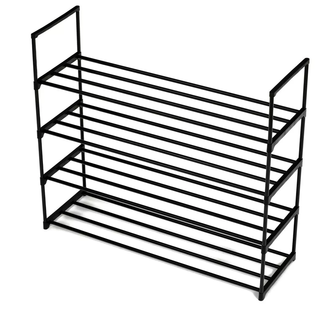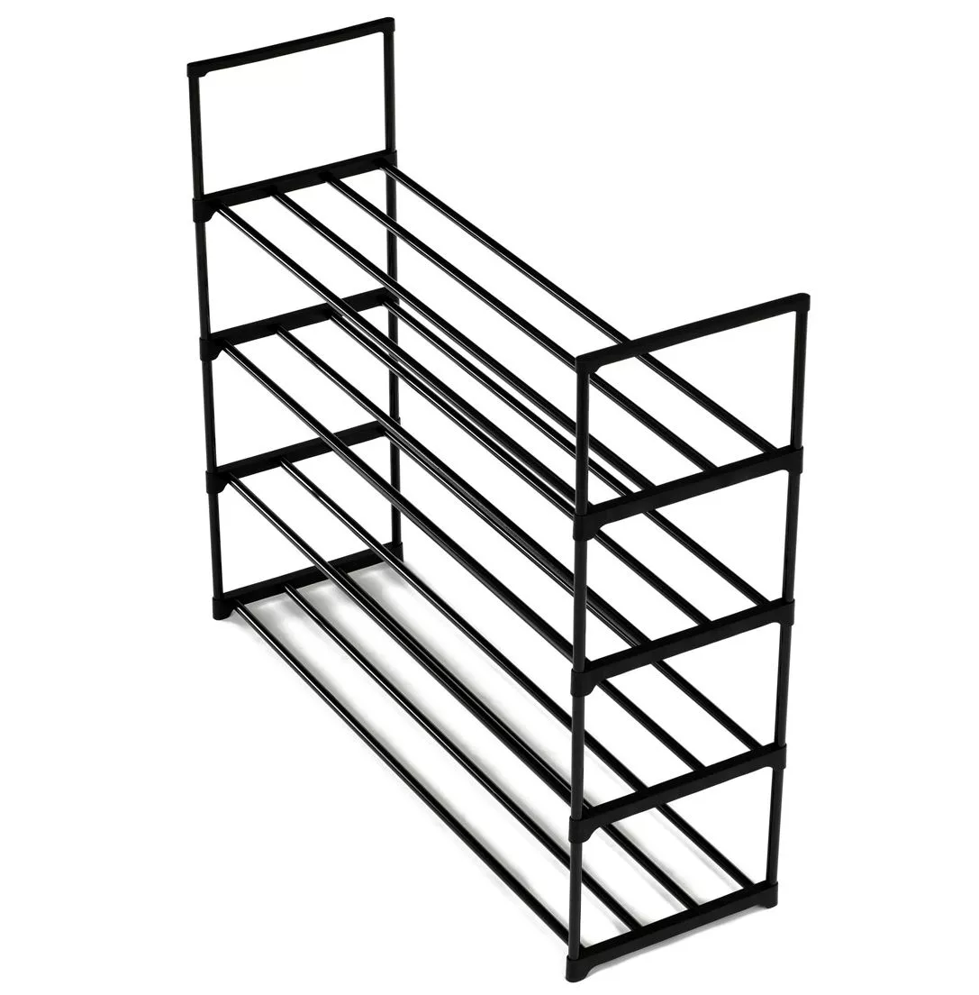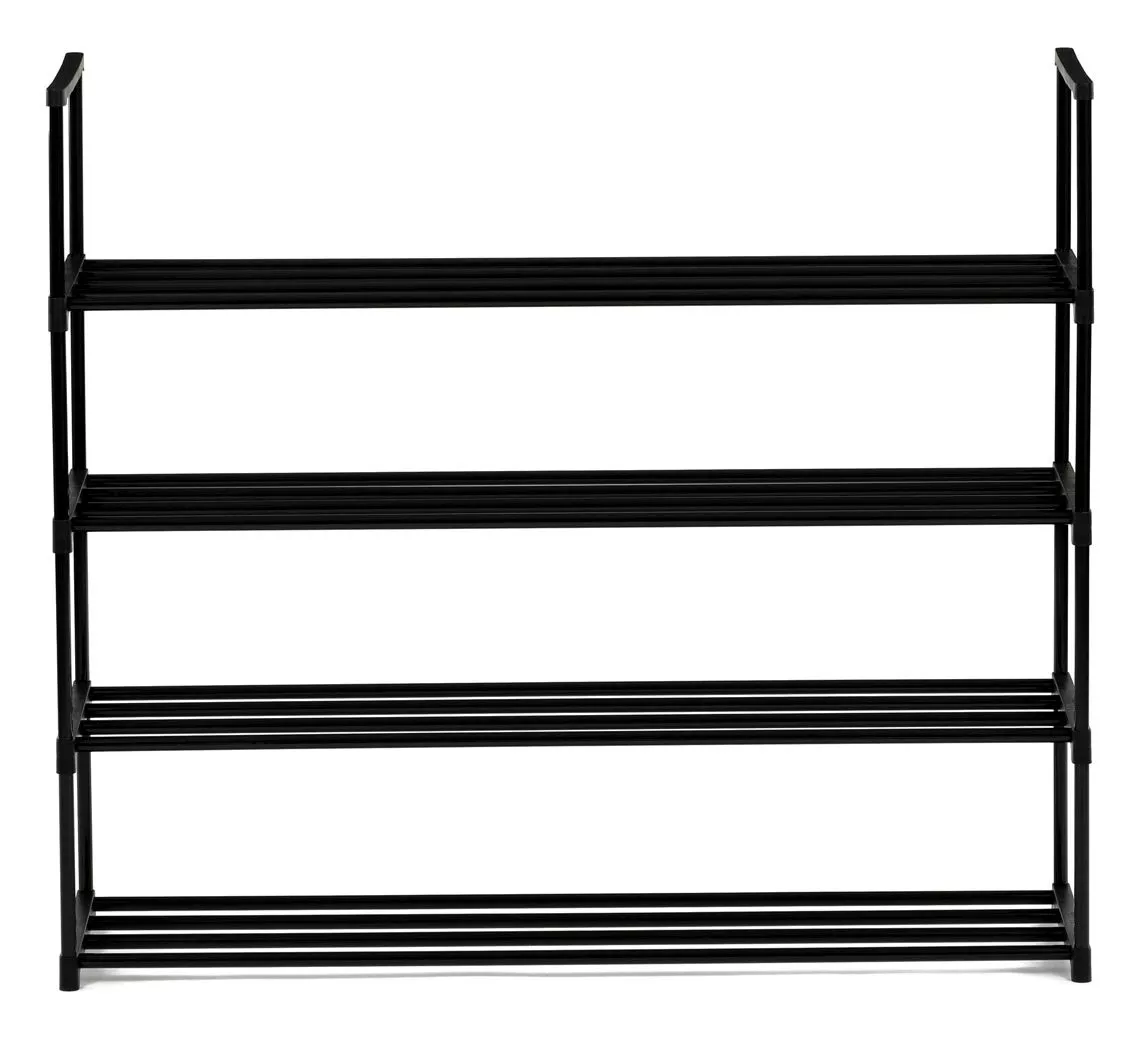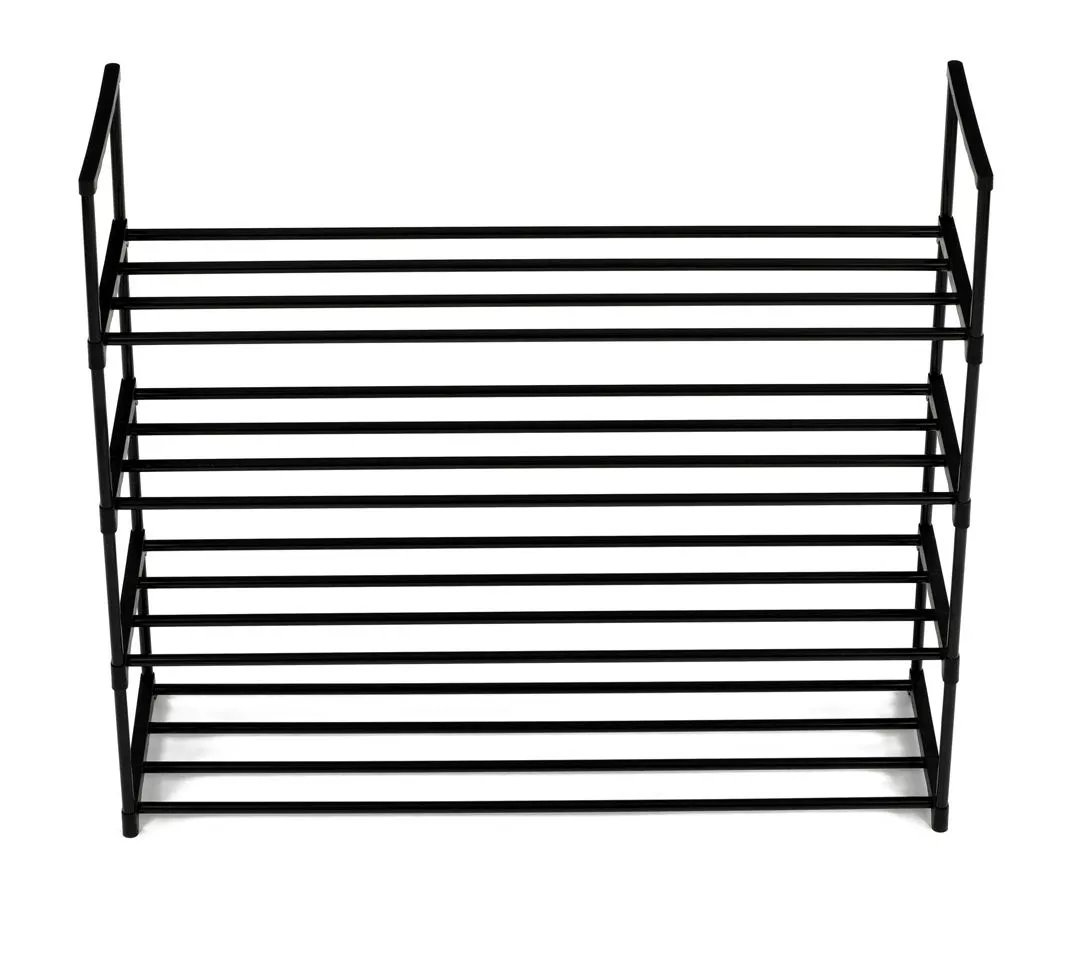 Priestranný botník kombinuje jednoduchý dizajn s maximálnou funkčnosťou. Vďaka čiernej kovovej konštrukcii so štyrmi policami pojme veľké množstvo párov obuvi, a preto je vhodný aj pre väčšie domácnosti. Otvorený dizajn zaisťuje ľahký prístup a dobré vetranie, takže vaše topánky zostanú dlhšie svieže.