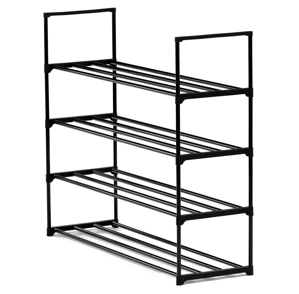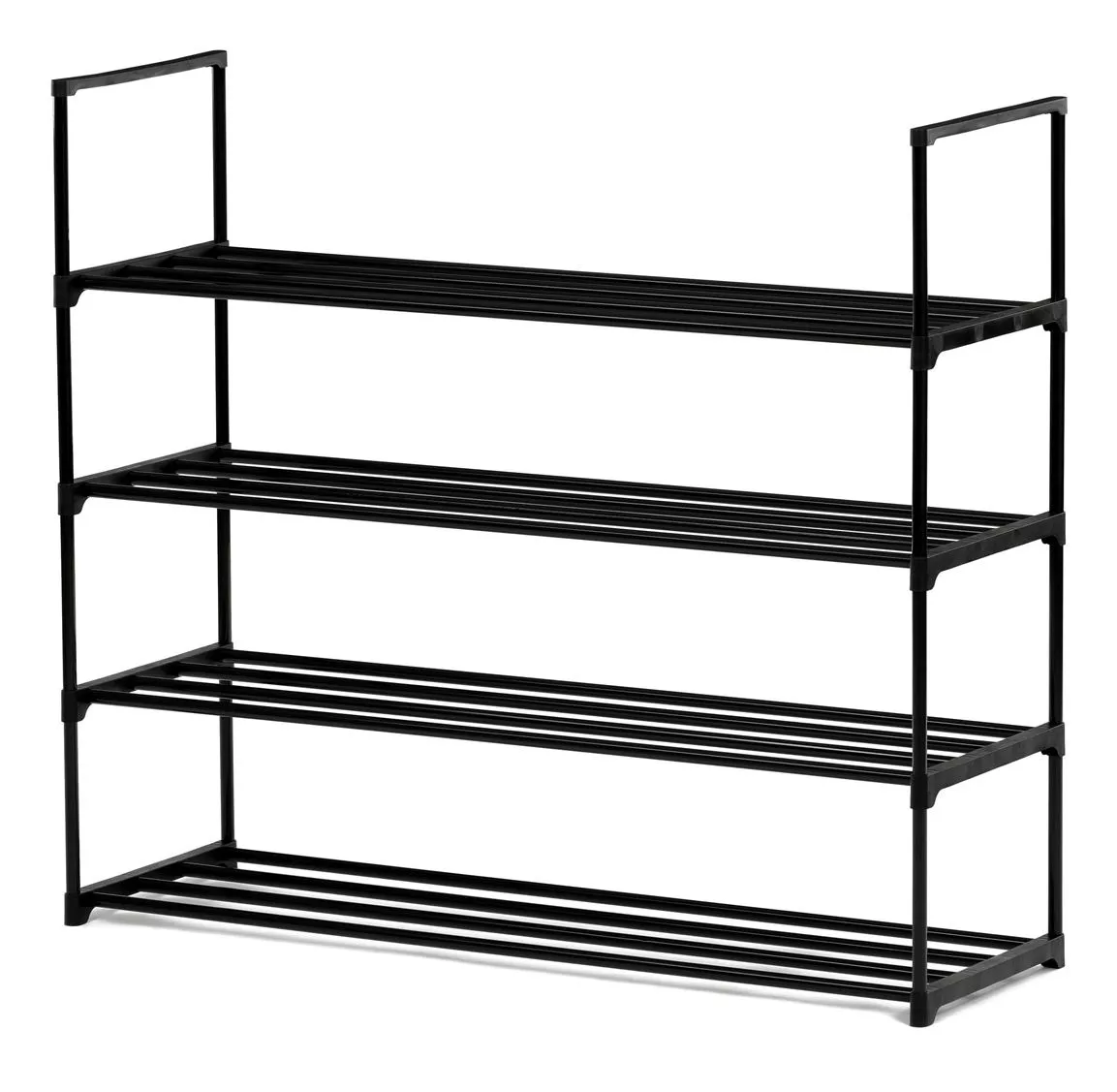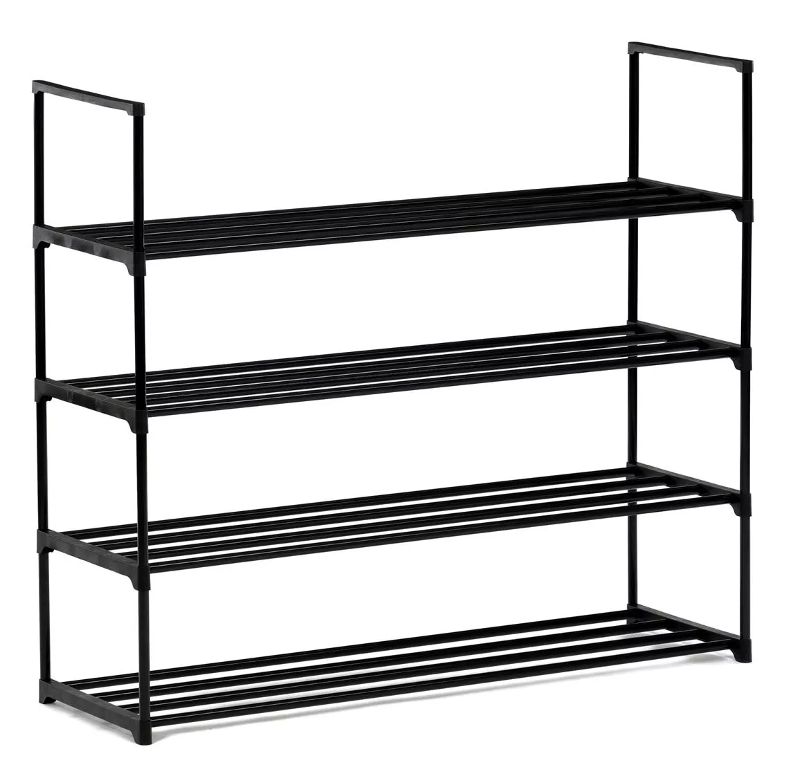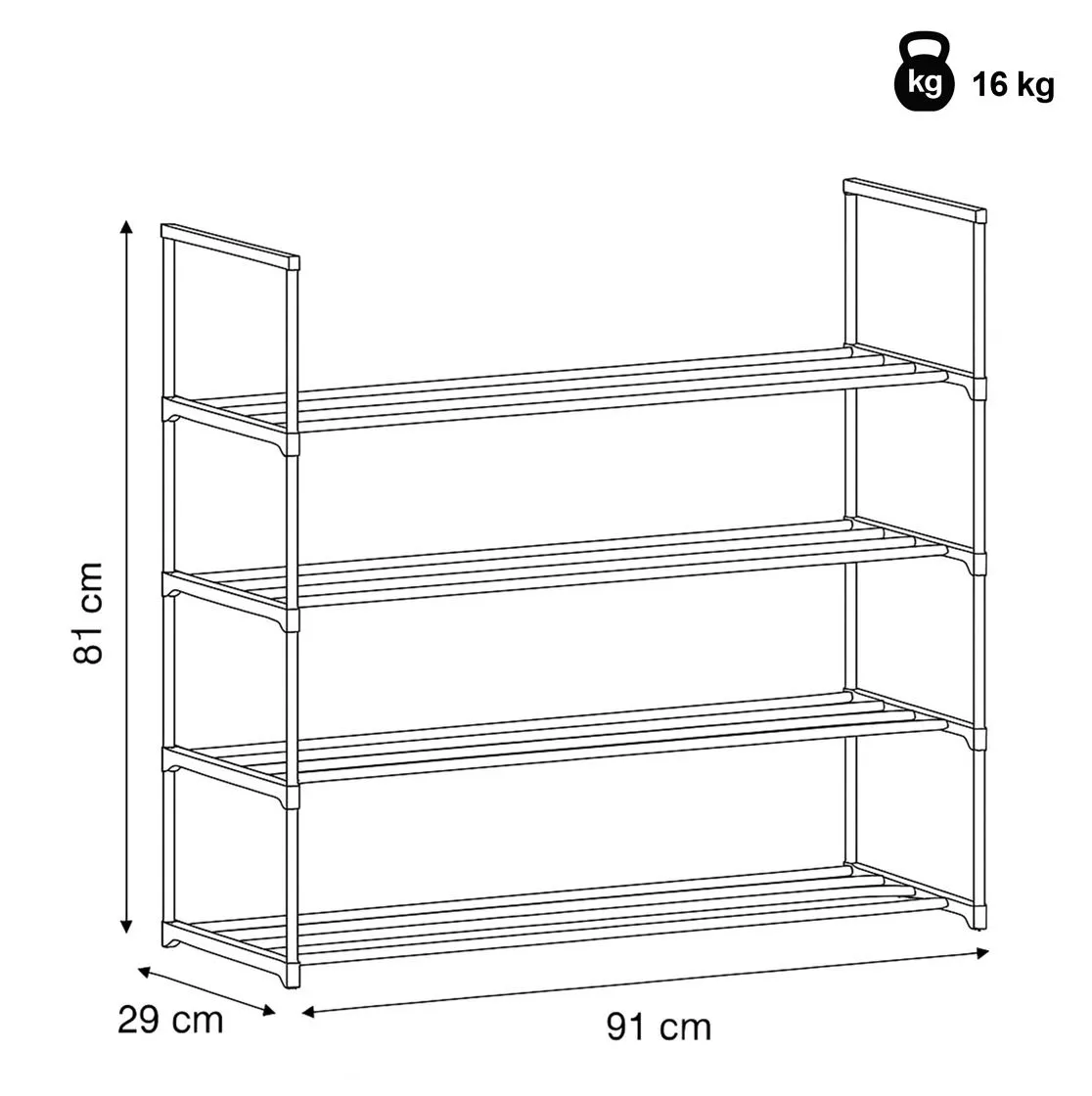 Priestranný botník kombinuje jednoduchý dizajn s maximálnou funkčnosťou. Vďaka čiernej kovovej konštrukcii so štyrmi policami pojme veľké množstvo párov obuvi, a preto je vhodný aj pre väčšie domácnosti. Otvorený dizajn zaisťuje ľahký prístup a dobré vetranie, takže vaše topánky zostanú dlhšie svieže.