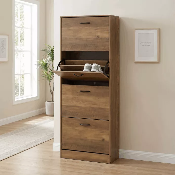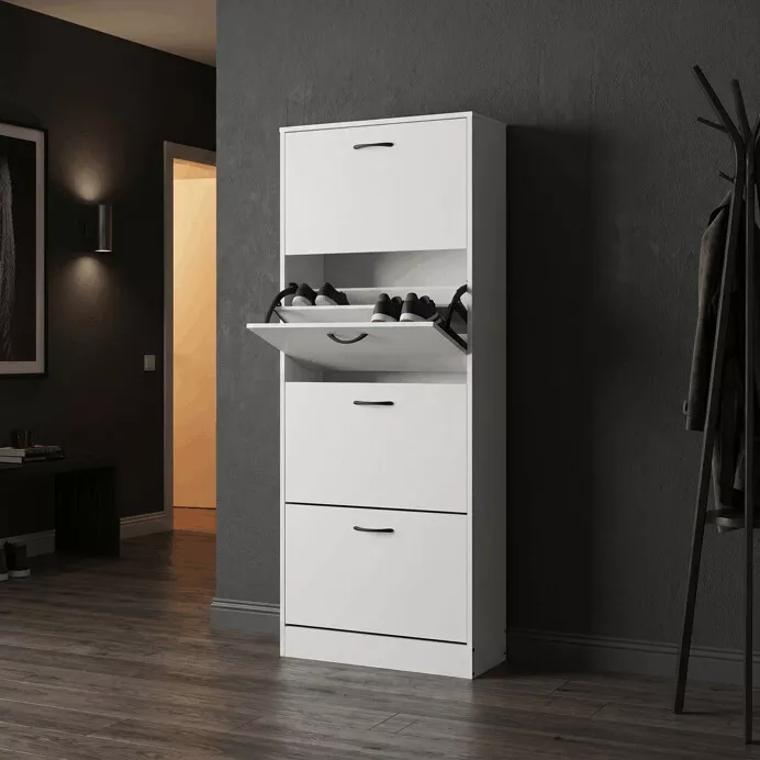 Botník so štyrmi priehradkami v dekore dub je ideálnym riešením na prehľadné uloženie obuvi a udržanie poriadku v domácnosti. Vysoké a ...
