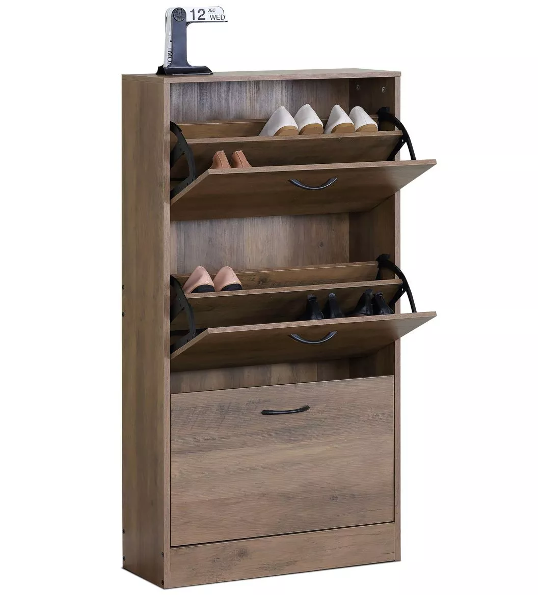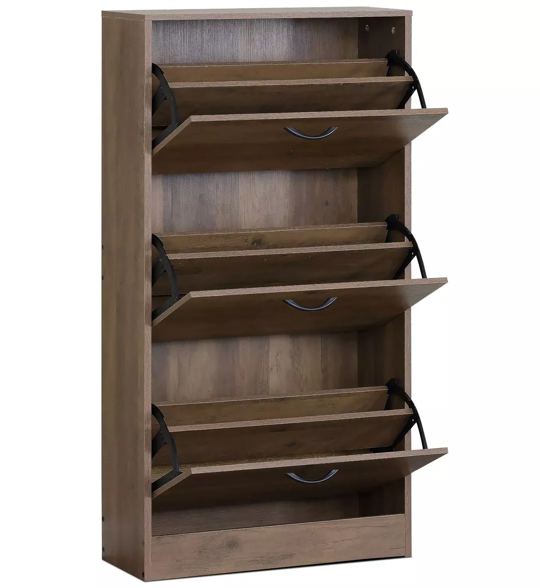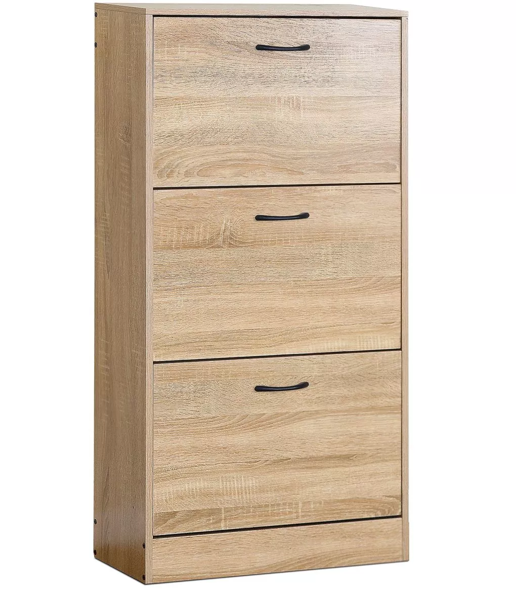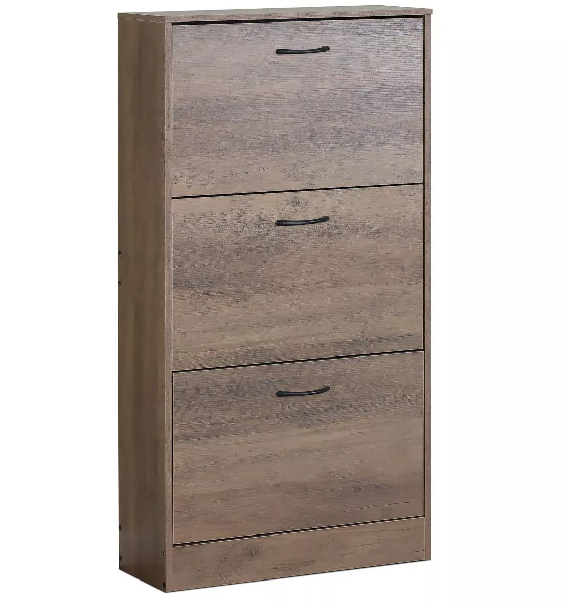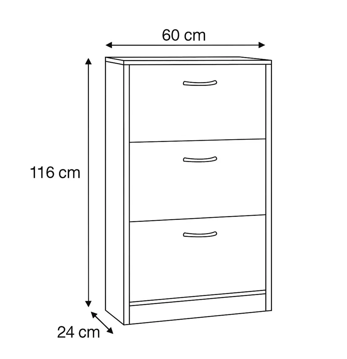Botník v dekore brestového dreva spája funkčnosť s moderným designom. Ponúka tri samostatné priehradky , ktoré poskytujú dostatok priestoru na prehľadné uloženie obuvi. Každá priehradka je opatrená čiernou kovovou úchytkou pre ľahké otváranie a zatváranie. Vďaka kompaktným rozmerom sa hodí aj do menších predsiení, chodieb či šatní, kde pomôže udržať poriadok a čistotu.