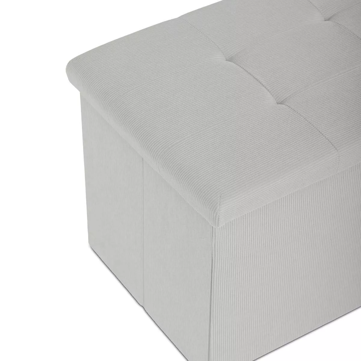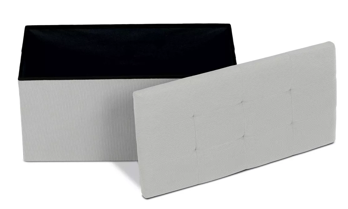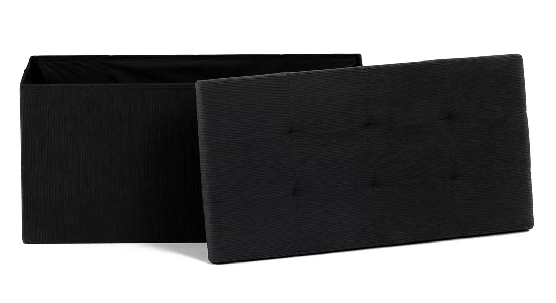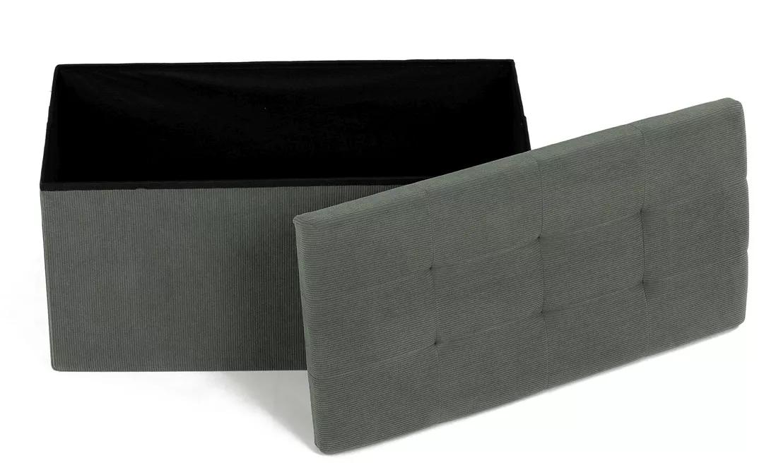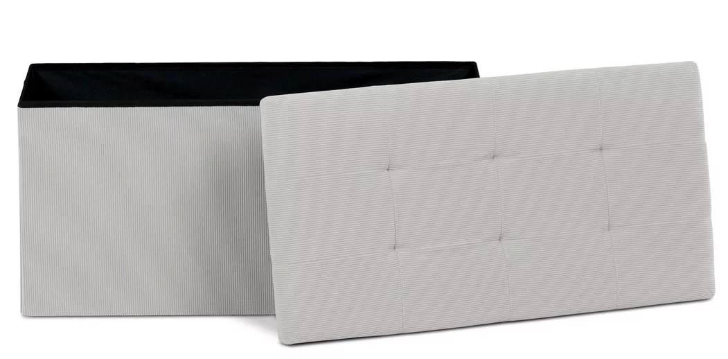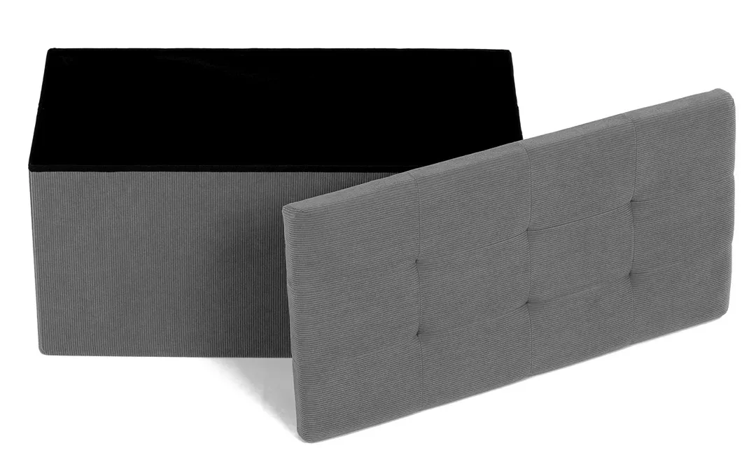 Textilný menčestrový poťah je príjemný na dotyk a ľahko zapadne do industriálne ladenej obývacej izby. Skrytý úložný priestor ponúka inteligentné riešenie na uloženie diek, vankúšov alebo detských hračiek. Tento viacúčelový kus nábytku prináša pohodlie, štýl a funkčnosť v jednom.