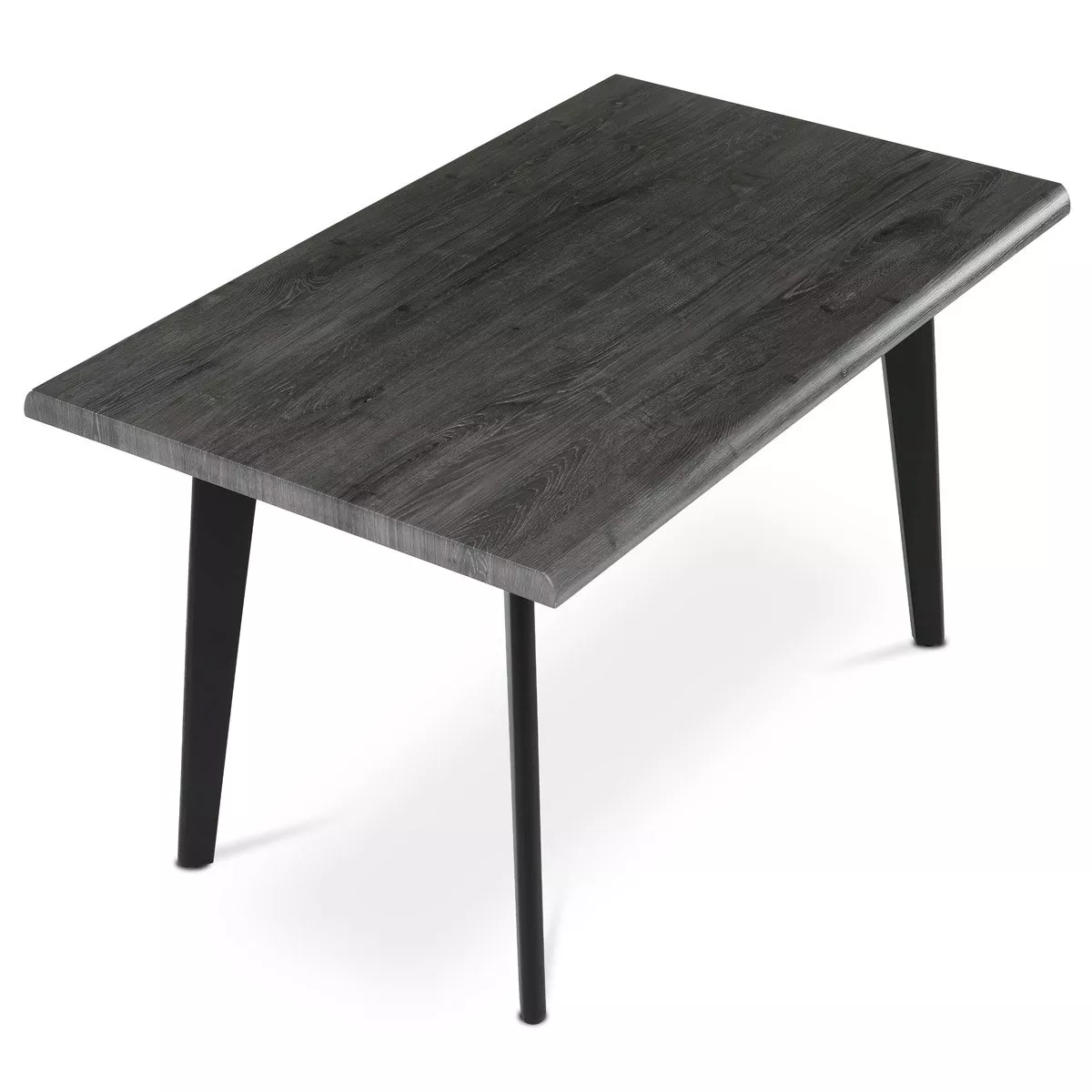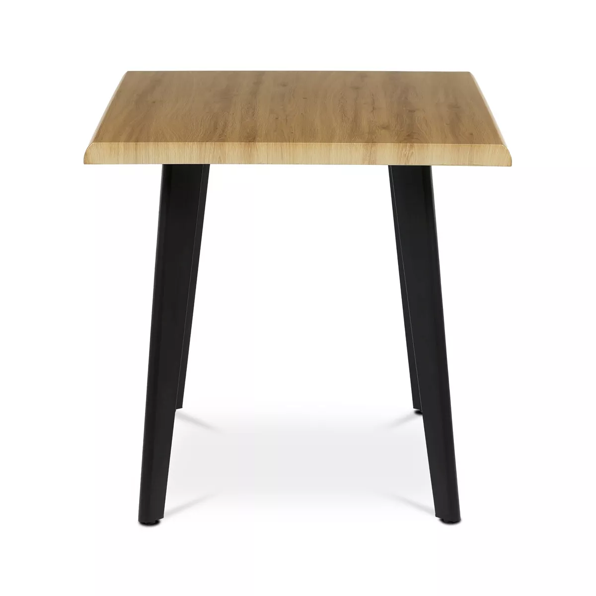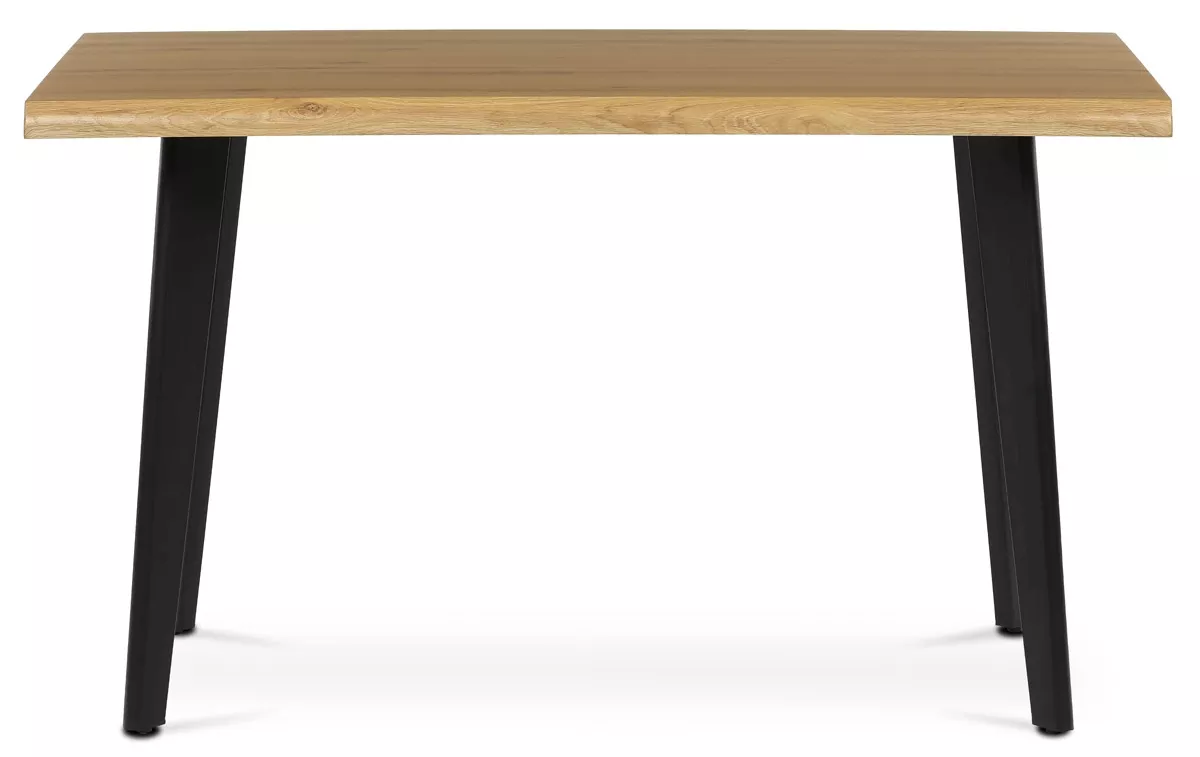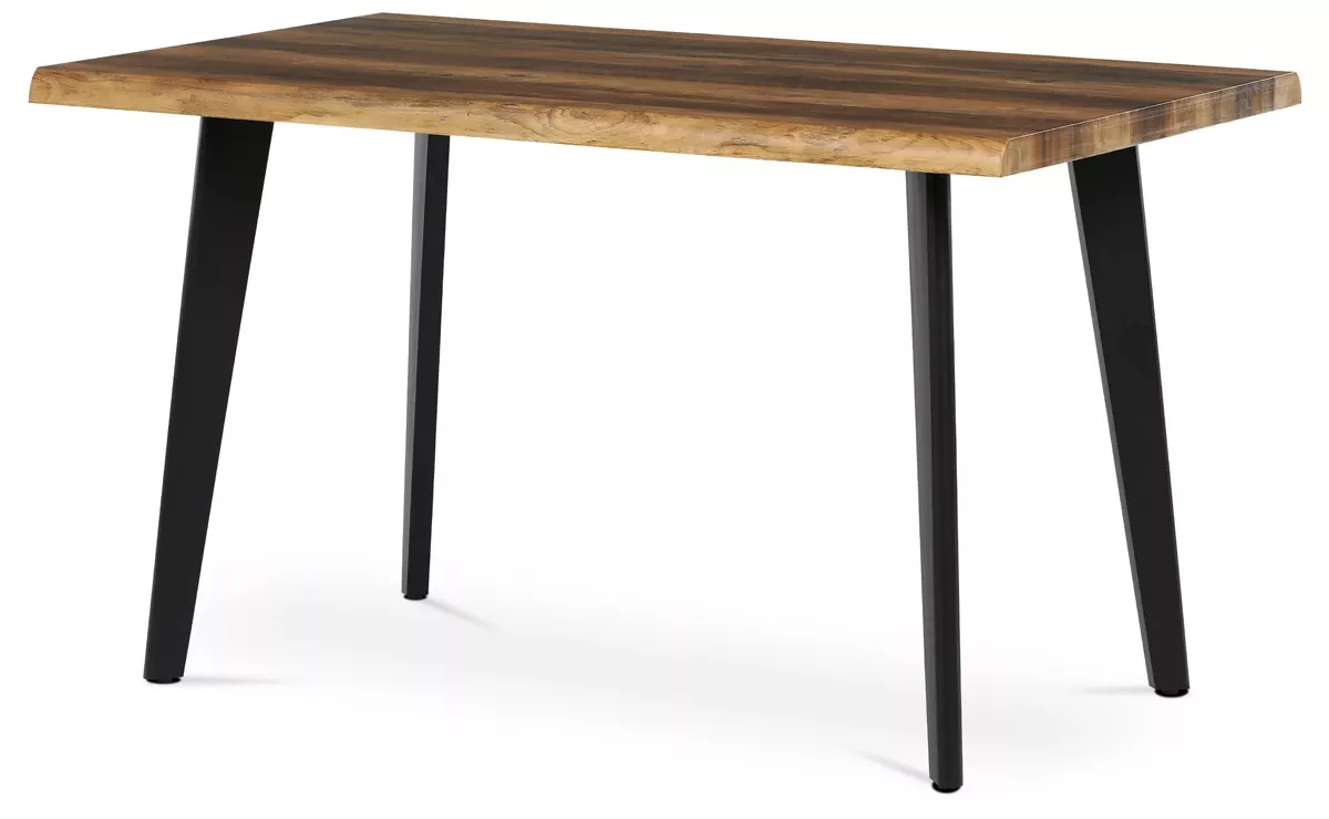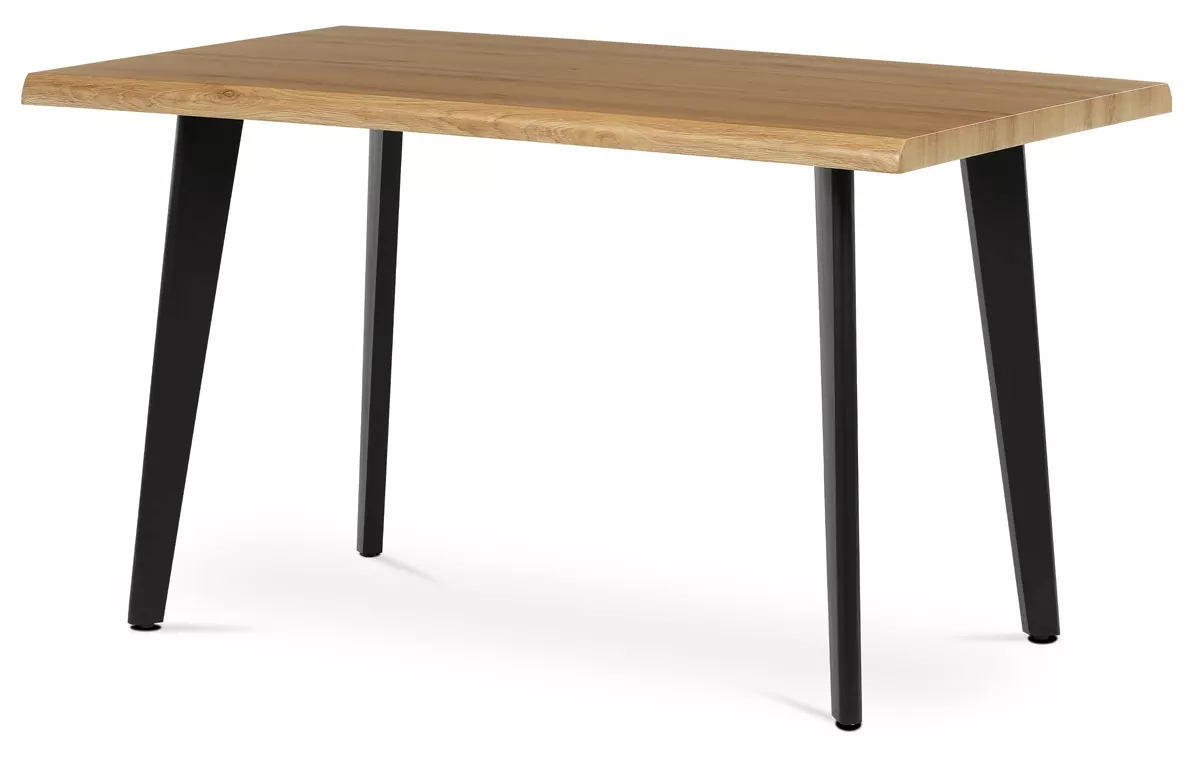 Obdĺžniková doska z kvalitného MDF materiálu imituje vzhľad opracovaného dreva a pridáva priestoru na autentickosti a teple. Čierne kovové nohy pridávajú industriálny kontrast a zaisťujú pevnosť a stabilitu.