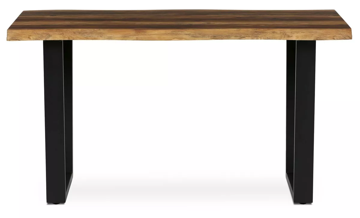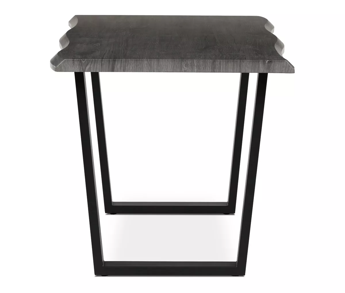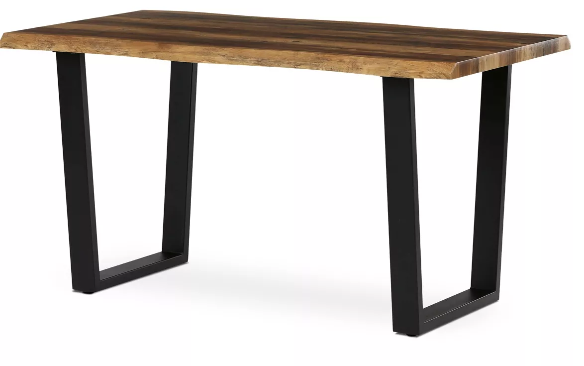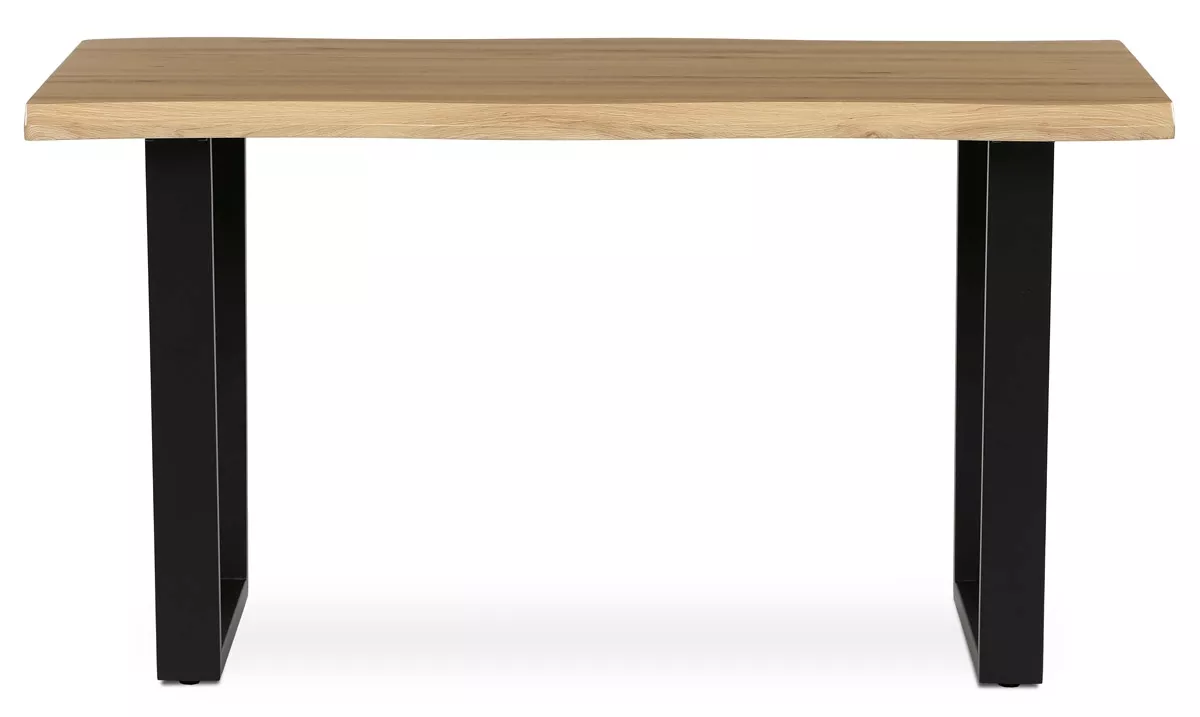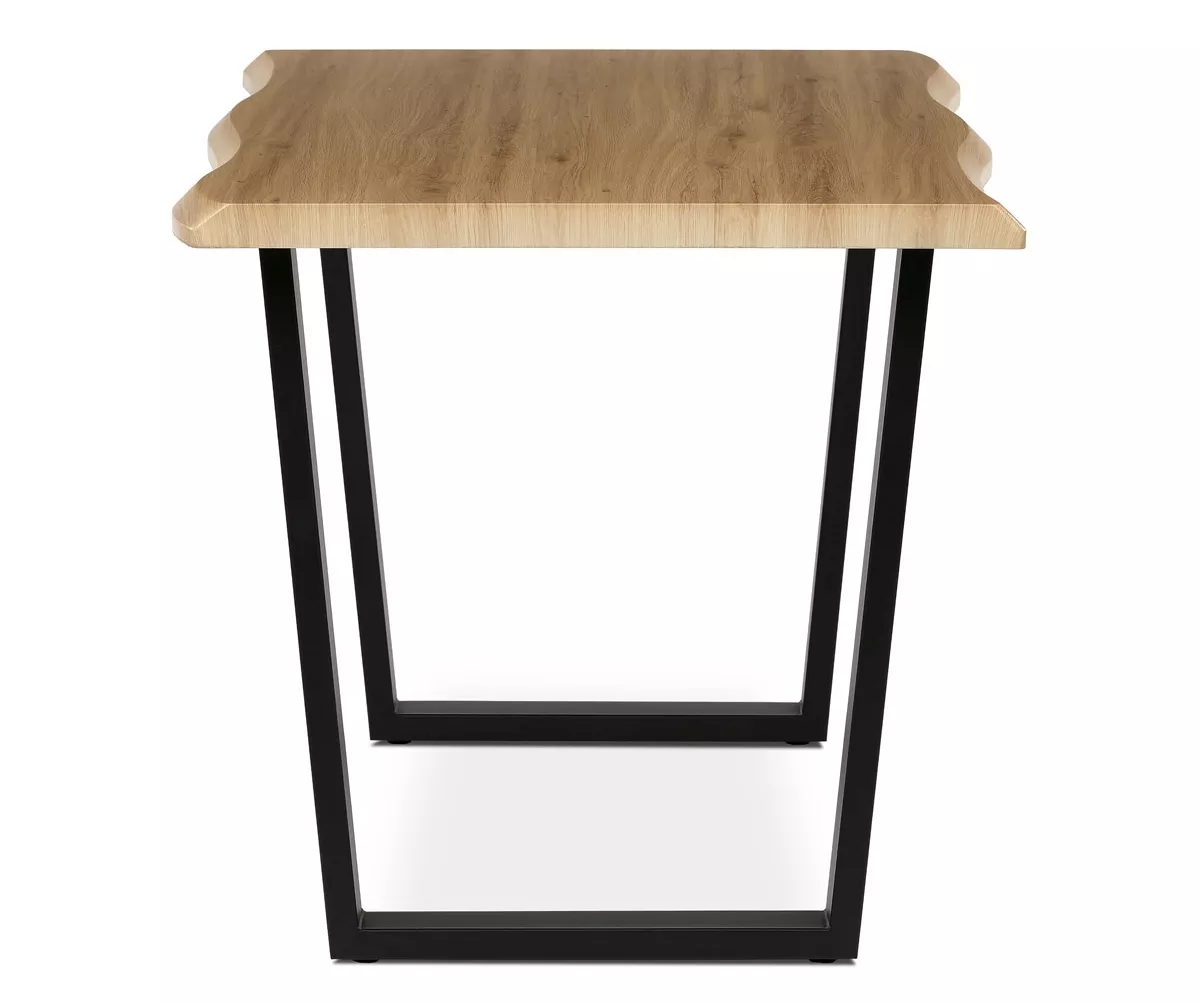 Doska z kvalitnej MDF prináša do priestoru modernú atmosféru s nádychom prírodnej elegancie. Atypický tvar stola dodáva originalitu, zatiaľ čo čierne kovové nohy poskytujú stabilnú základňu a vytvárajú štýlový kontrast.