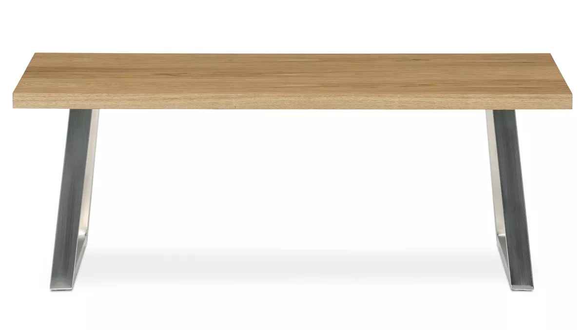 Elegantné materiály: Doska z kvalitnej dyhy s dubovým dekorom a brúsené nerezové nohy vytvárajú luxusný vzhľad.