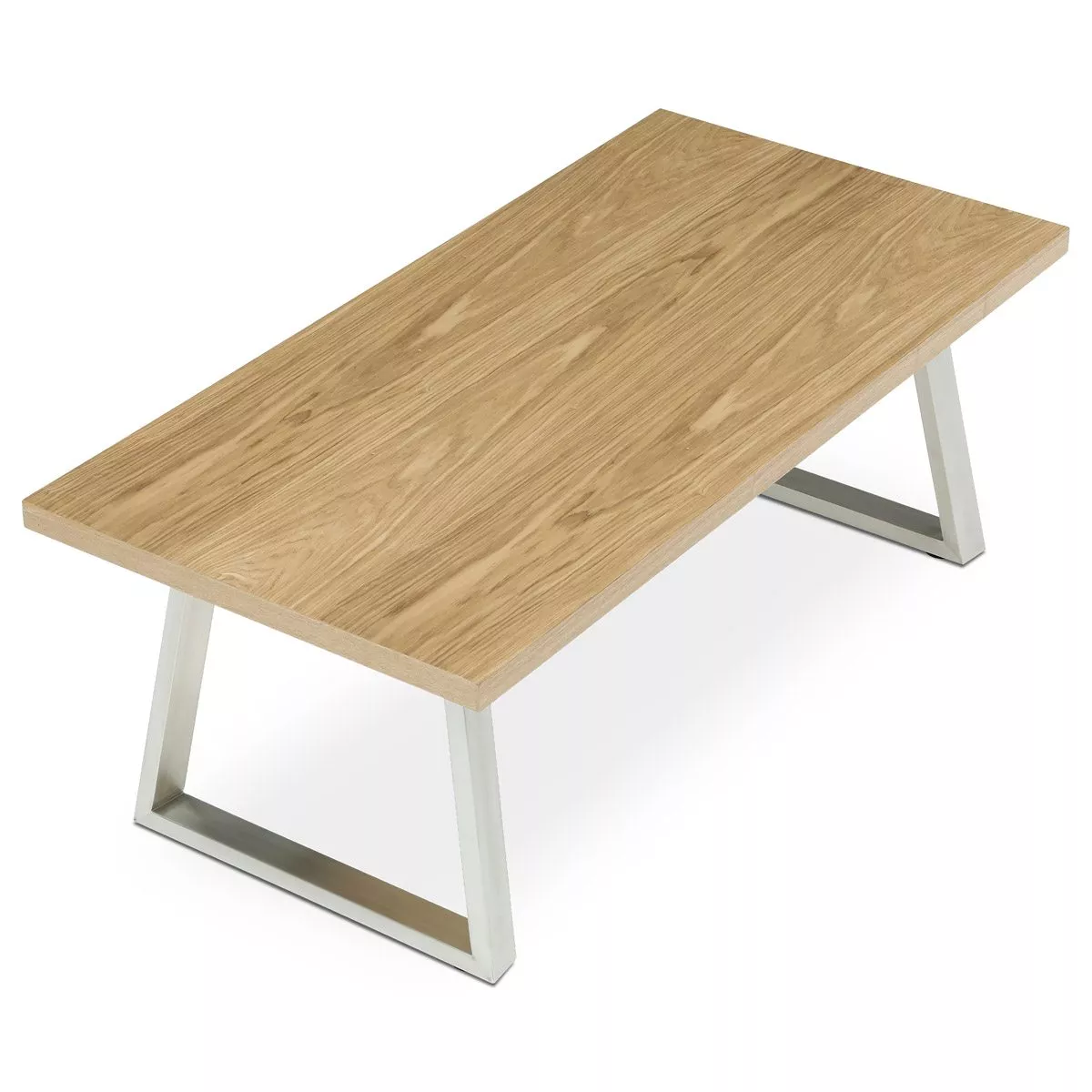 Konferenčný stôl CT-W1515 predstavuje dokonalú kombináciu prírodného vzhľadu a modernej elegancie. Vďaka doske z dyhy s dekorom duba a nohám z brúseného nerezu prináša do vášho interiéru sofistikovaný a štýlový prvok. Stolík je ideálny na každodenné využitie, či už pri rodinných chvíľach, alebo posedenie s priateľmi.