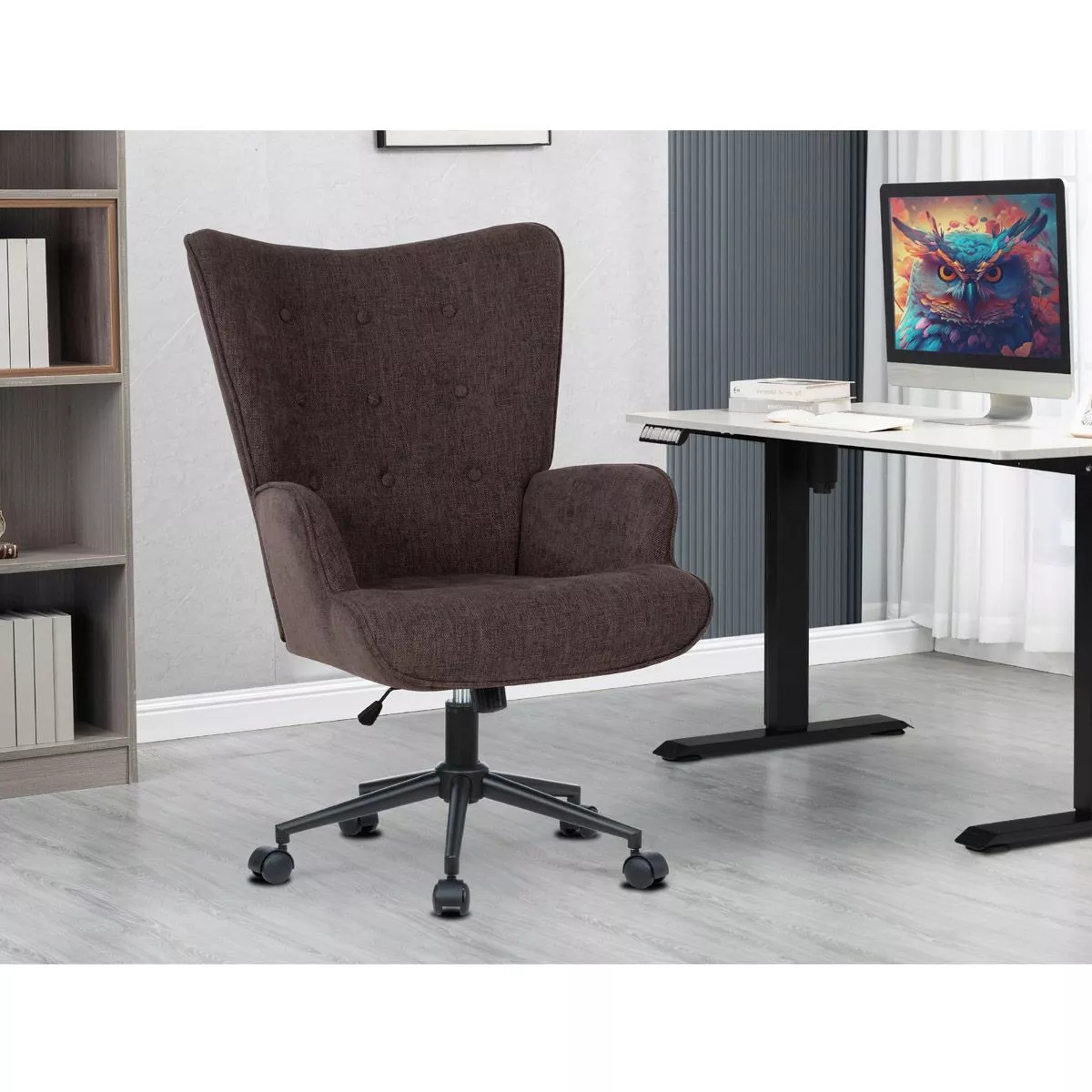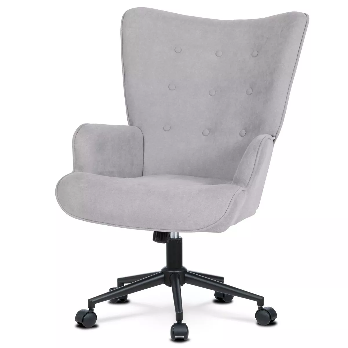 Moderné kancelárske kreslo kombinuje elegantný vzhľad s praktickými funkciami na pohodlné sedenie po celý deň. Mäkké čalúnenie z príjemnej látky (100% polyester) poskytuje komfort, zatiaľ čo hojdací mechanizmus umožňuje uvoľnenie počas práce. Výškovo nastaviteľné sedadlo aj podrúčky sa ľahko prispôsobia vašej postave a pracovnému štýlu. Kovový kríž a stabilná konštrukcia zaručujú pevnosť, dlhú životnosť a nosnosť až 120 kg.