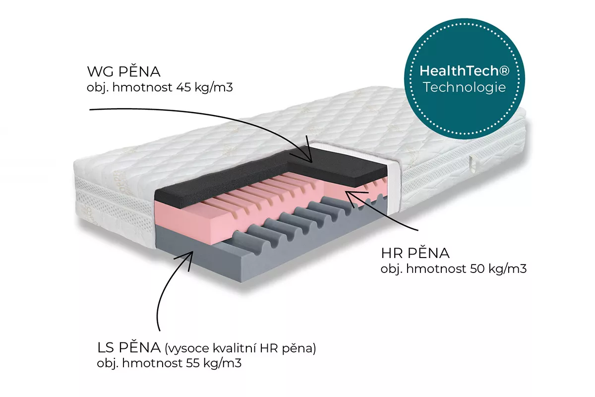 - HR + LS pena - pružnosť, stabilita a dokonalé prispôsobenie telu.