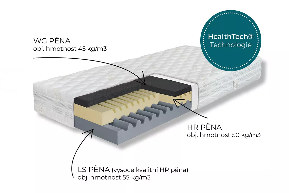 - Materiál jadra: LS pena, studená HR pena, Watergel