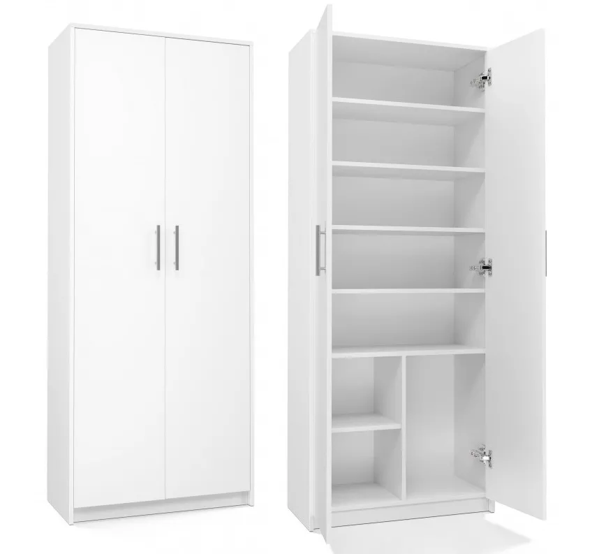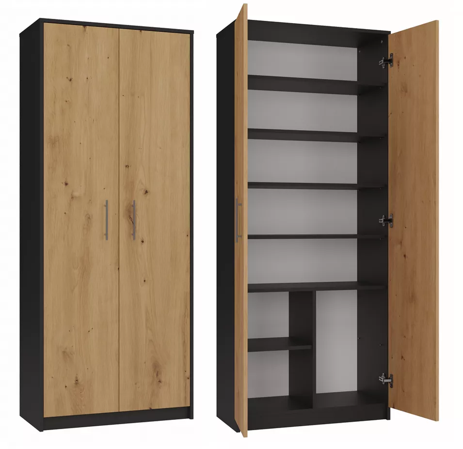 Skriňa je vyrobená z kvalitnej laminovanej dosky, ktorá je odolná voči poškriabaniu a vlhkosti. Hrany sú chránené ABS úpravou , čo predlžuje životnosť nábytku a dodáva mu čistý vzhľad.