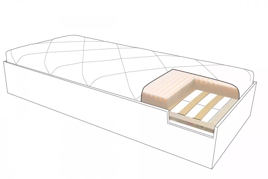 Povrch jadra matraca má špeciálnu štruktúru pre lepšie prúdenie vzduchu, čím napomáha udržaniu zdravej spánkovej klímy a zaisťuje príjemné prostredie po celú noc. Komfortná výška plochy na ležanie 53 cm uľahčuje vstávanie a ľahnutie . Samozrejmosťou je aj veľký úložný priestor na lôžkoviny, ktorý je ľahko prístupný od nôh.