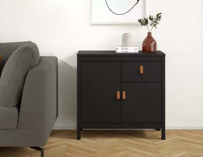 Moderná komoda Real 671 zaujme svojim čistým a elegantným dizajnom, ktorý ľahko zapadne do každého interiéru. Vďaka jednoduchým líniám a nadčasovému vzhľadu pôsobí sviežo a pritom prakticky. Komoda ponúka dostatok úložného priestoru pre vaše oblečenie, dokumenty alebo doplnky. Dostupná je v modernej čiernej farbe, takže ju ľahko zladíte s ostatným nábytkom vo vašom domove.
