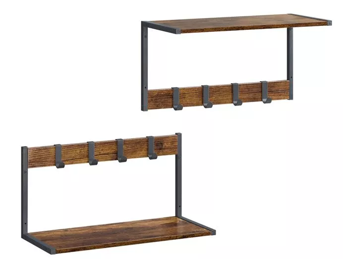 Jedna z políc je navyše vybavená piatimi kovovými háčikmi, ktoré oceníte pri zavesení drobných predmetov? napríklad hrnčekov, kuchynských pomôcok, kľúčov či dekorácií. Povrch dosiek je odolný voči opotrebovaniu a ľahko sa čistí, takže si zachová svoj vzhľad aj pri každodennom používaní.