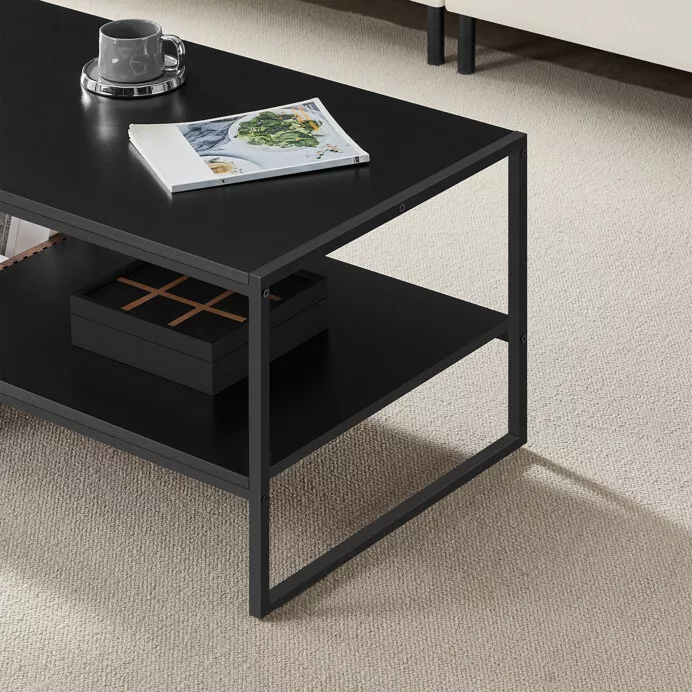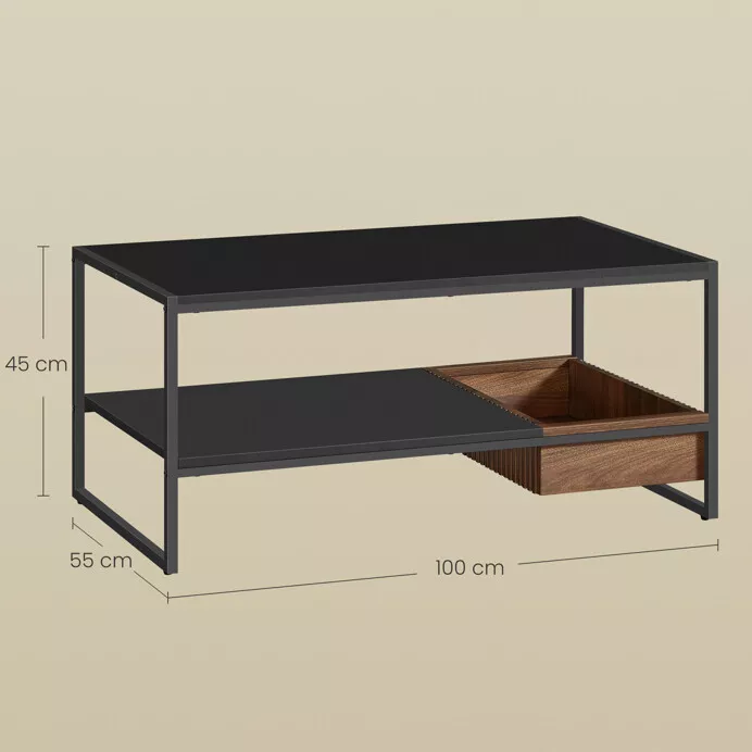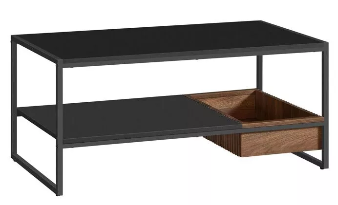 Elegantný konferenčný stolík s rozmermi 100 × 55 × 45 cm zaujme kombináciou matnej čiernej konštrukcie a dosky z MDF v dekore prírodného orecha. Spojenie kovu a dreva vytvára harmonický kontrast, ktorý zapadne do každého moderného či industriálneho interiéru.
