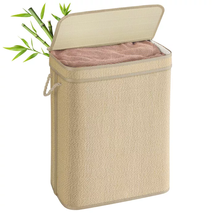 Vnútorná textilná vložka chráni bambusovú štruktúru a umožňuje ľahké čistenie aj manipuláciu s bielizňou. Vďaka praktickému madlu je možné kôš jednoducho prenášať a pohodlne používať v každodennej prevádzke.