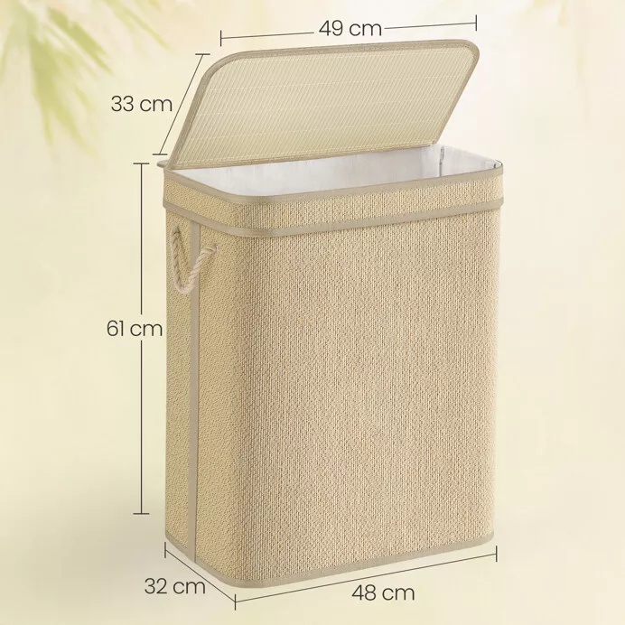 Bambusový kôš na bielizeň - prirodzená krása a praktická funkčnosť Elegantný kôš na bielizeň s rozmermi 49 × 33 × 61 cm je vyrobený z ...
