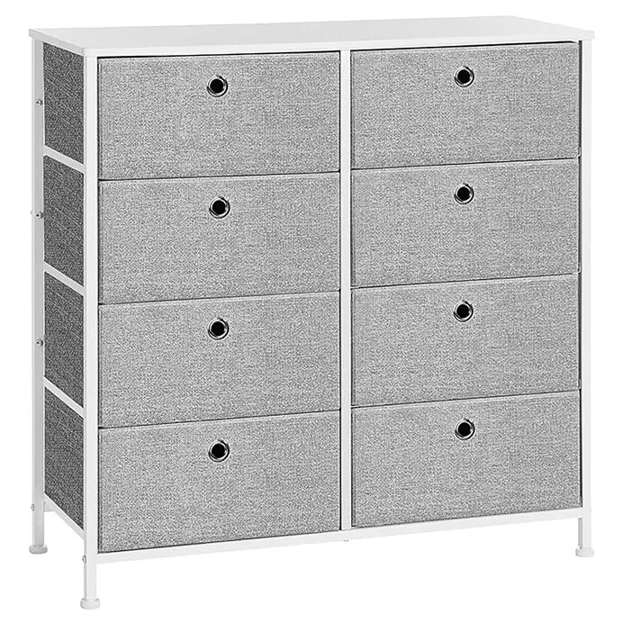 Komoda s ôsmimi látkovými zásuvkami - ľahká, praktická a elegantná Moderná komoda s rozmermi 80 × 30 × 82 cm kombinuje pevnú kovovú ...