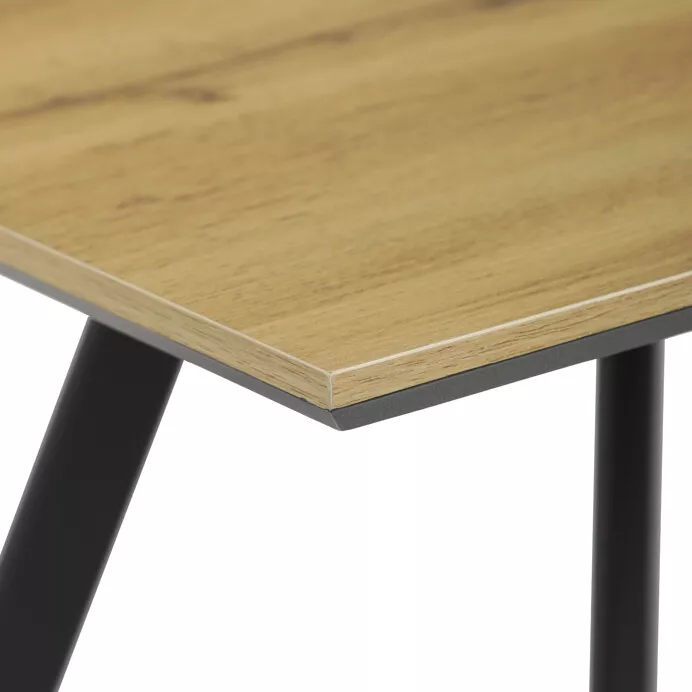 ABS hrana po obvode dosky zvyšuje odolnosť proti poškodeniu a prispieva k dlhej životnosti stola. Stabilná kovová podnož v čiernom matnom prevedení so skoseným profilom dodáva stolu moderný charakter a zároveň zaisťuje pevnosť konštrukcie.